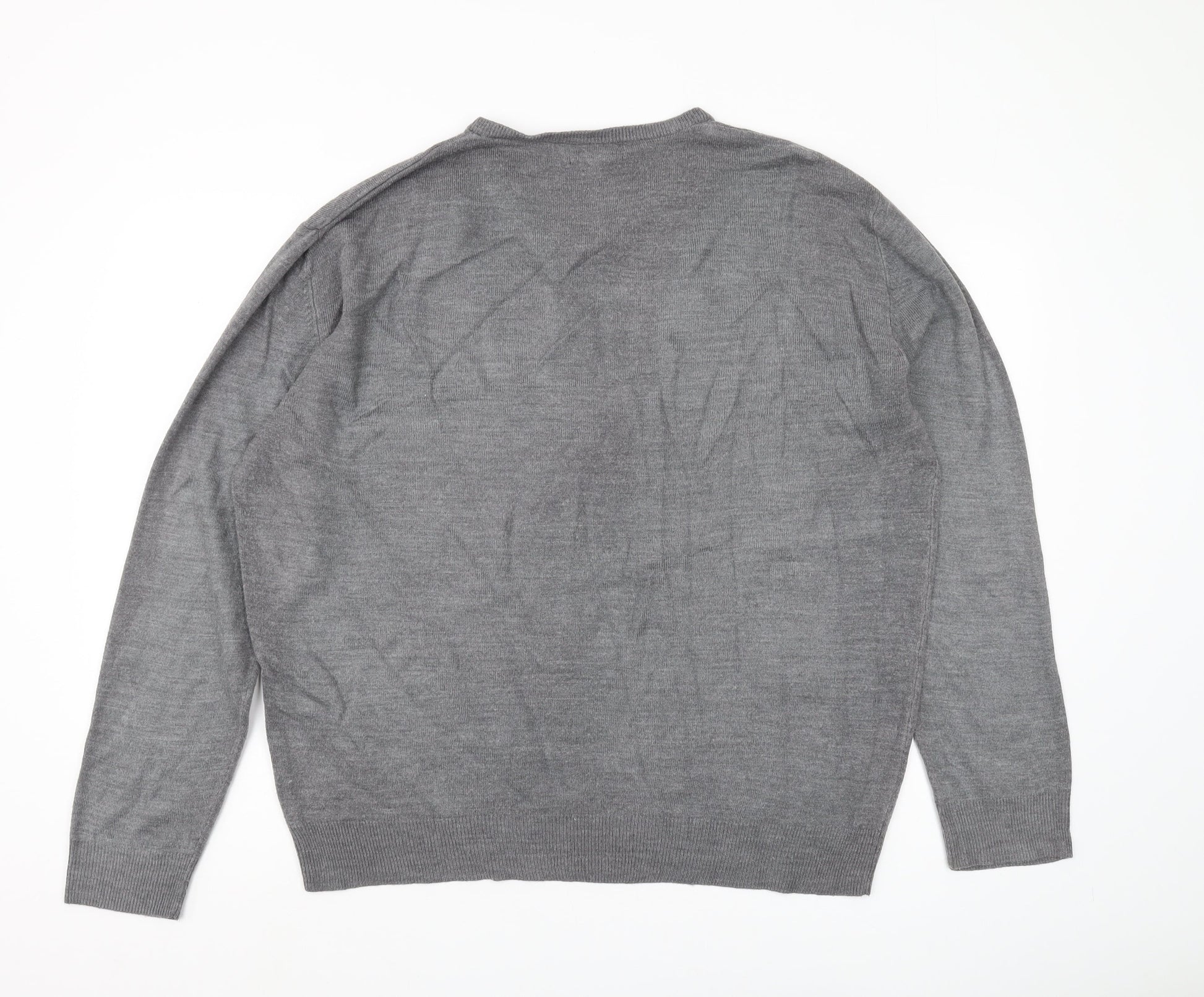 Thomas Nash Men's Grey Wool V-Neck Pullover Jumper L