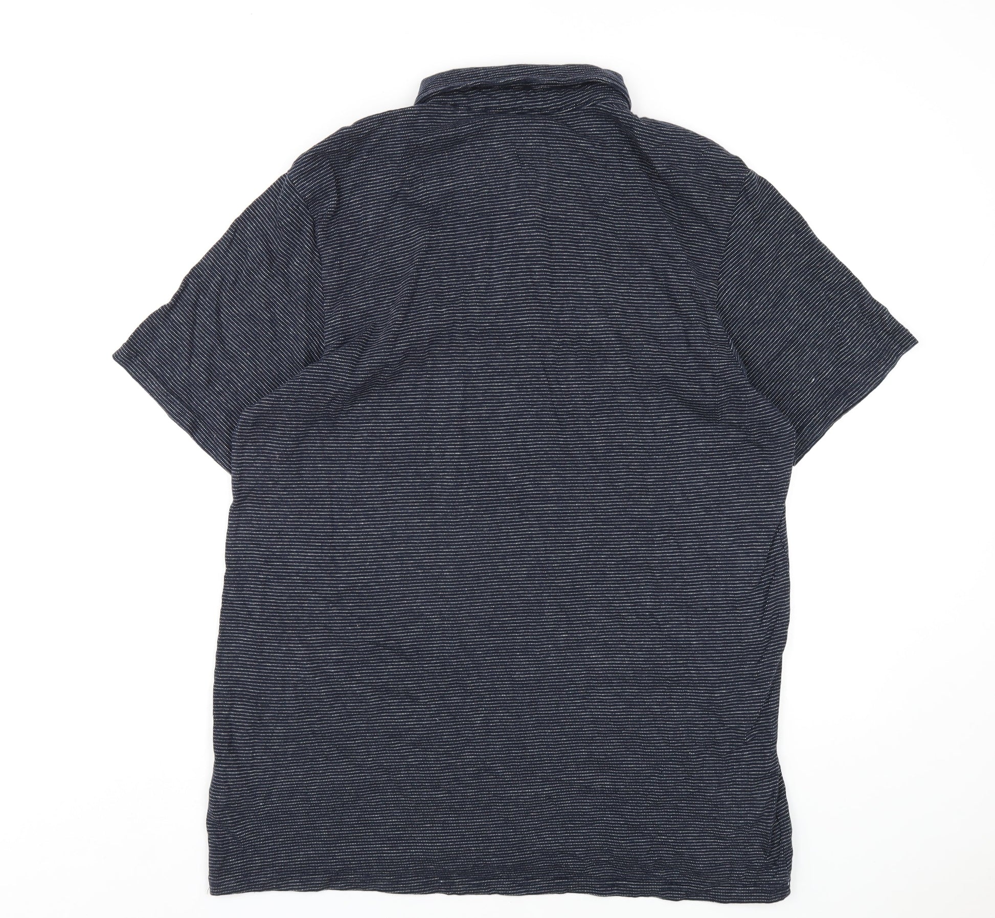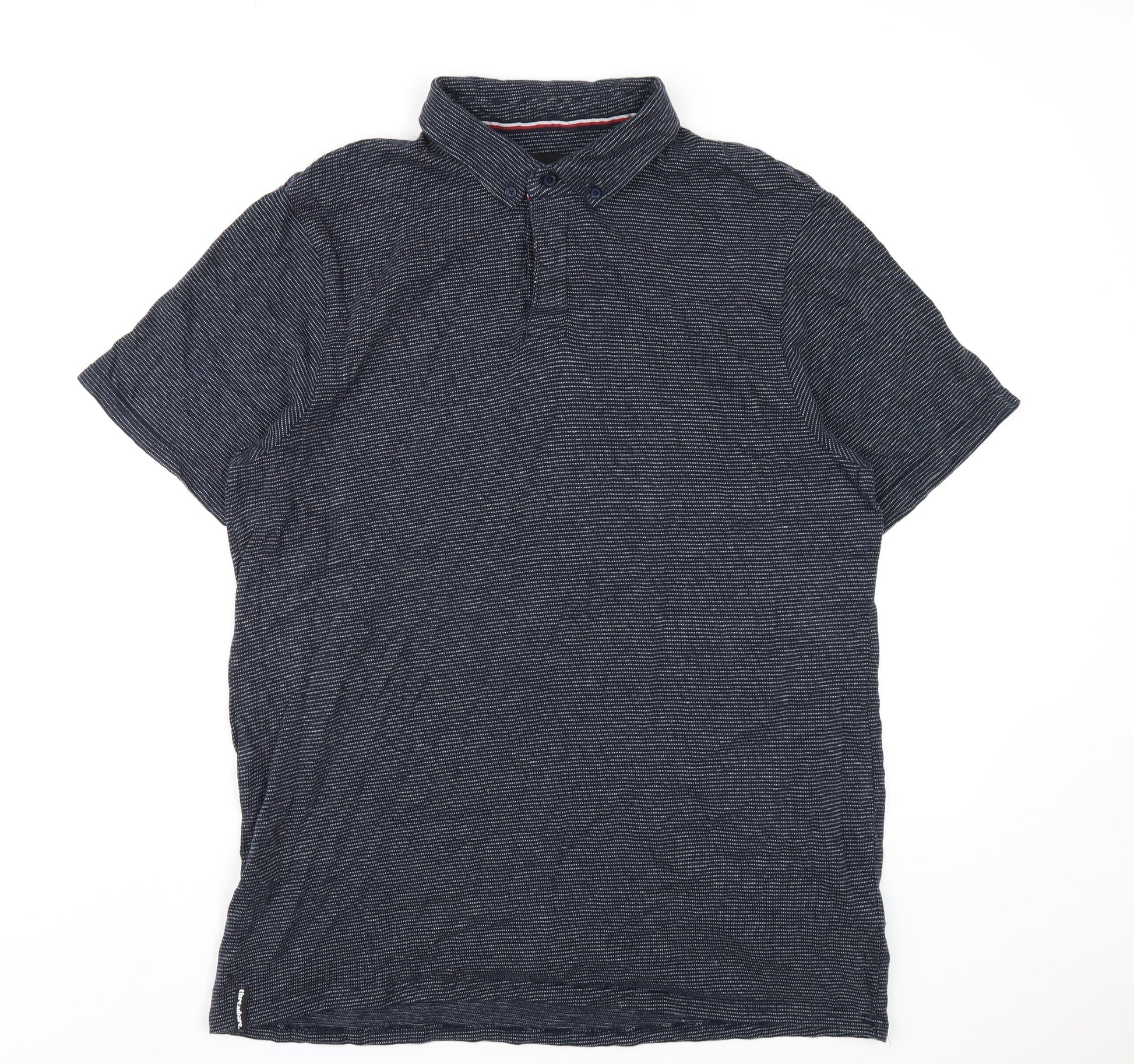 Threadbare Mens Blue Striped Cotton Polo Size 2XL Collared Button