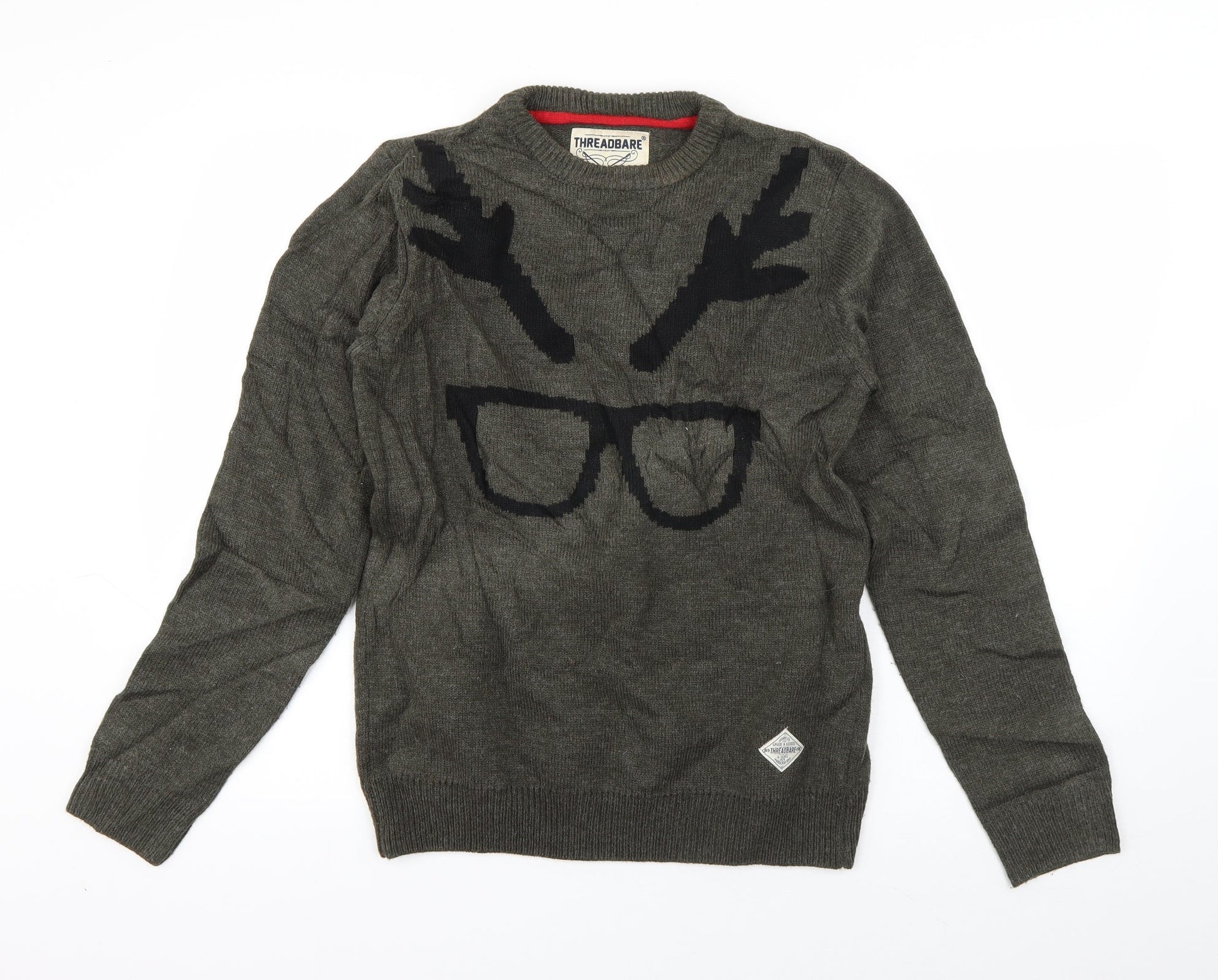 Threadbare Mens Green Crew Neck Acrylic Pullover Jumper Size S - Hipster Reindeer