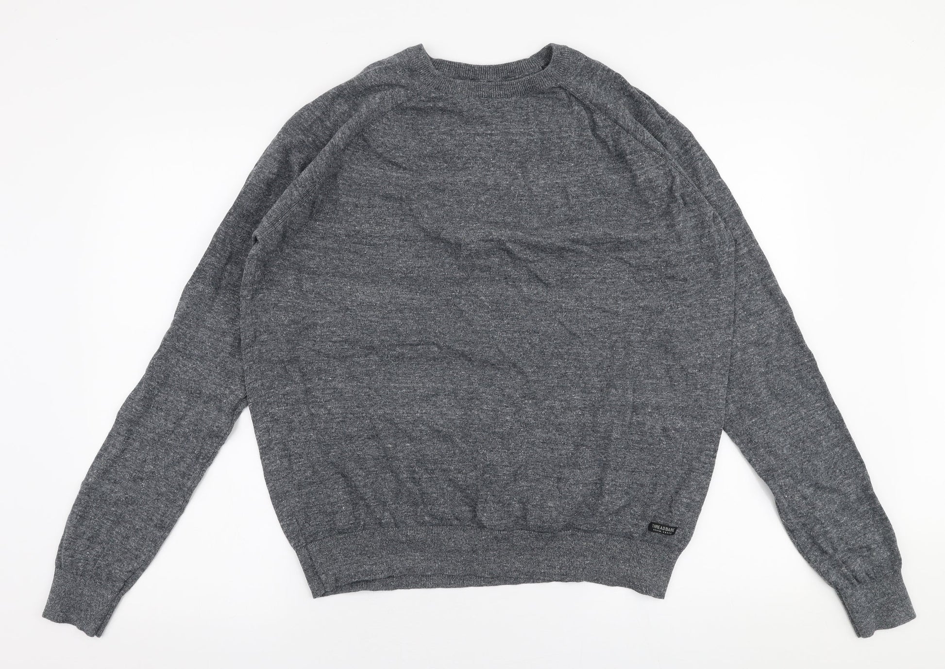 Threadbare Mens Grey Round Neck Cotton Pullover Jumper Size XL