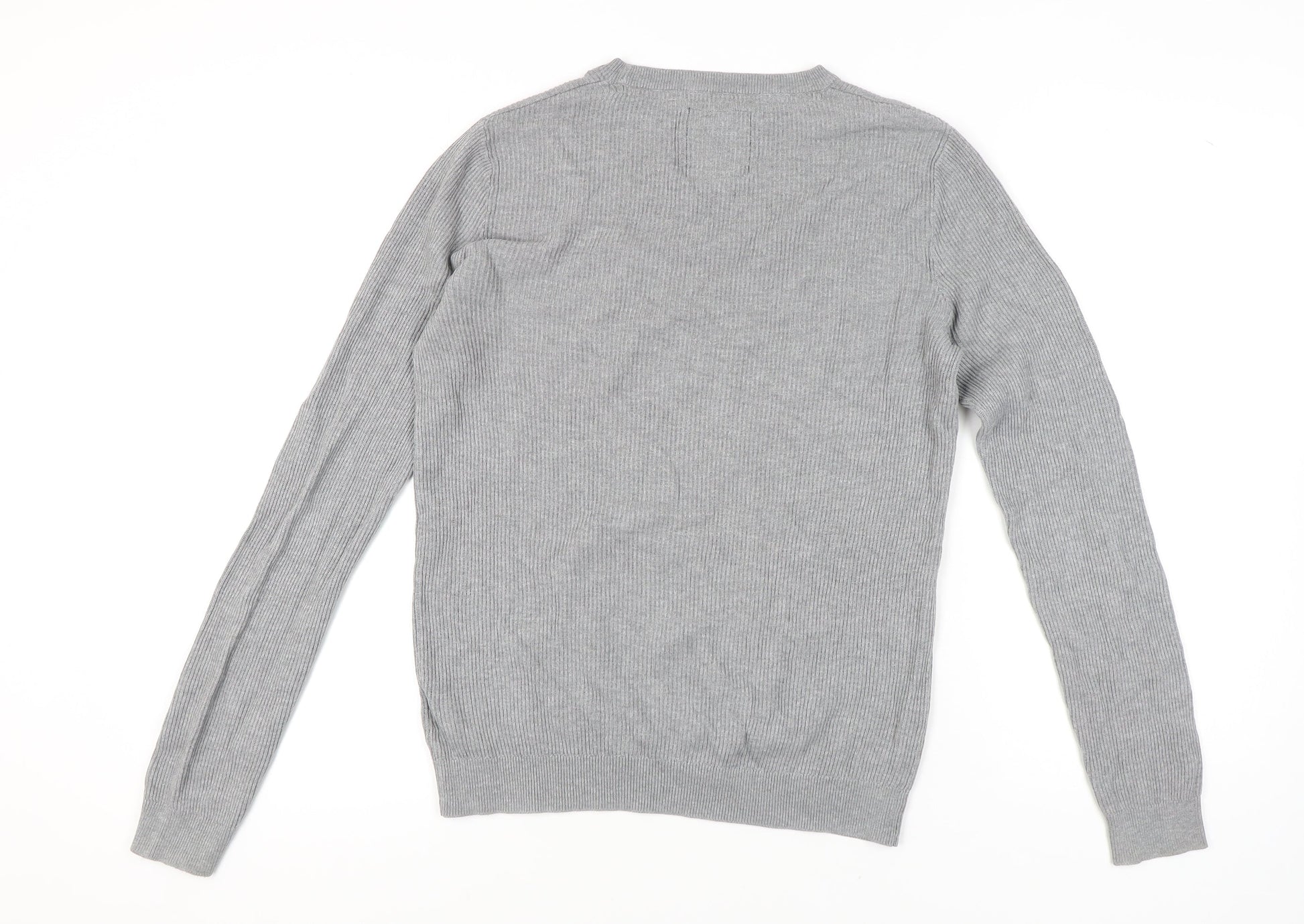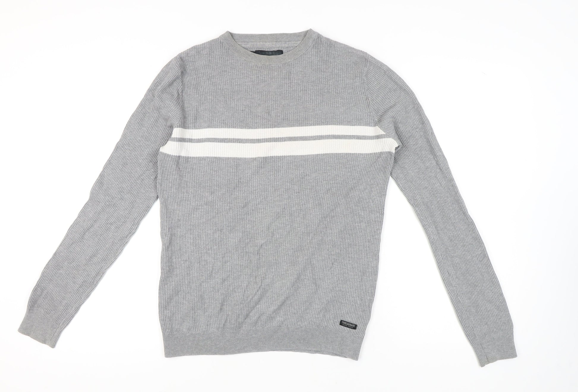Threadbare Men's Grey Striped Pullover Jumper, Size S