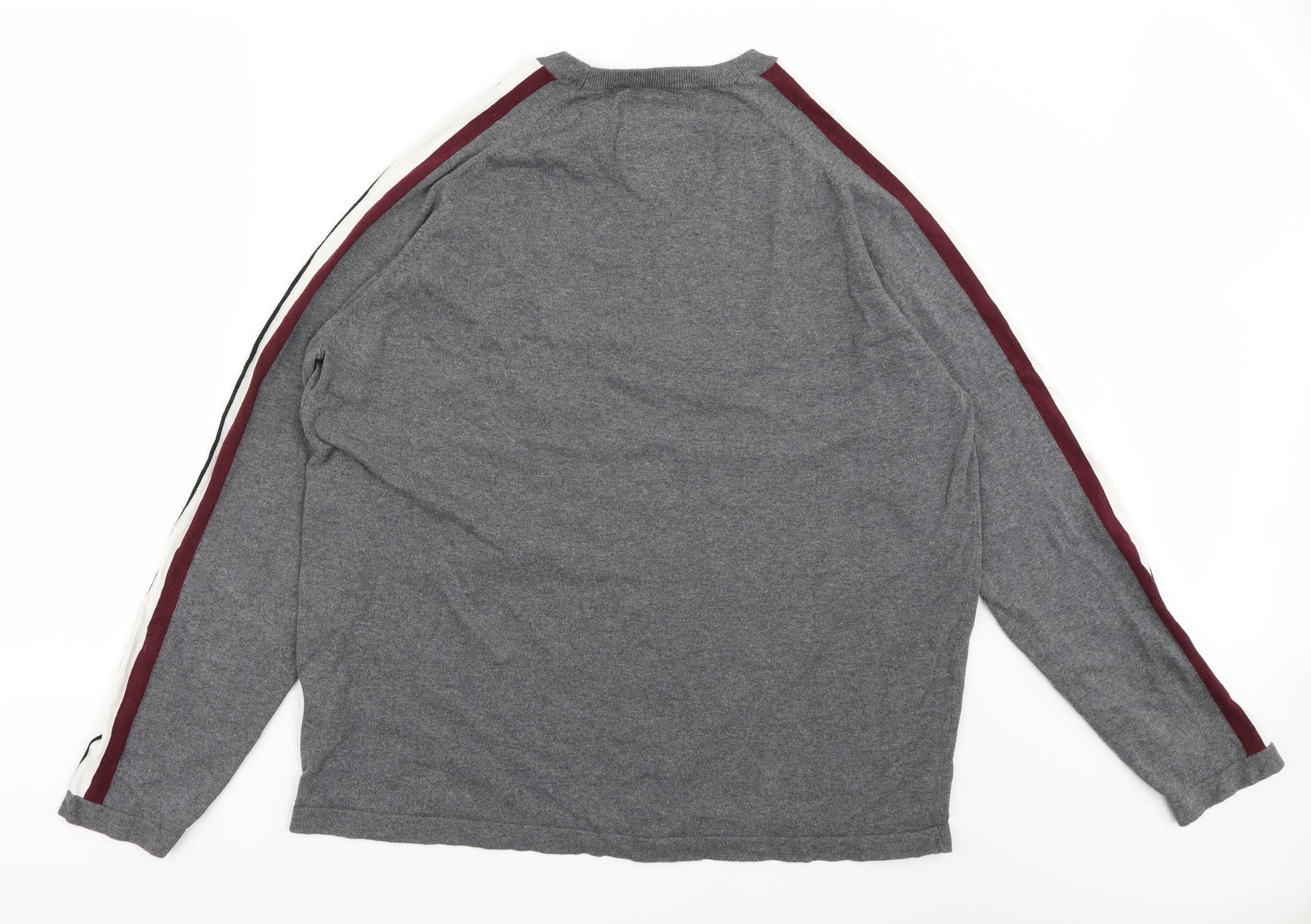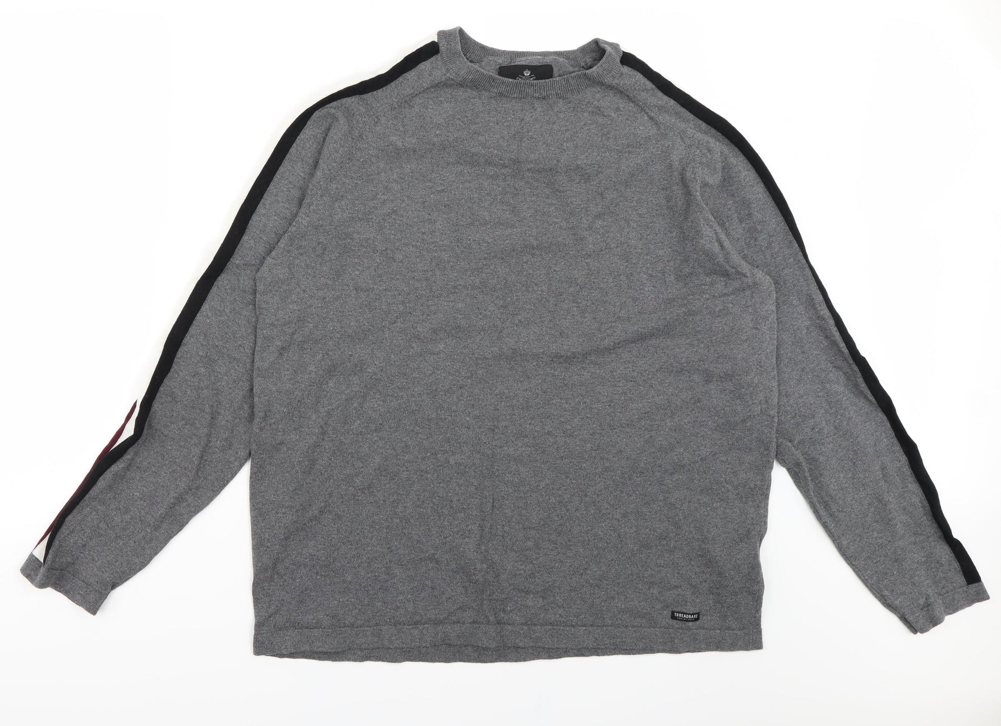Threadbare Mens Grey Striped Pullover Jumper Size XL