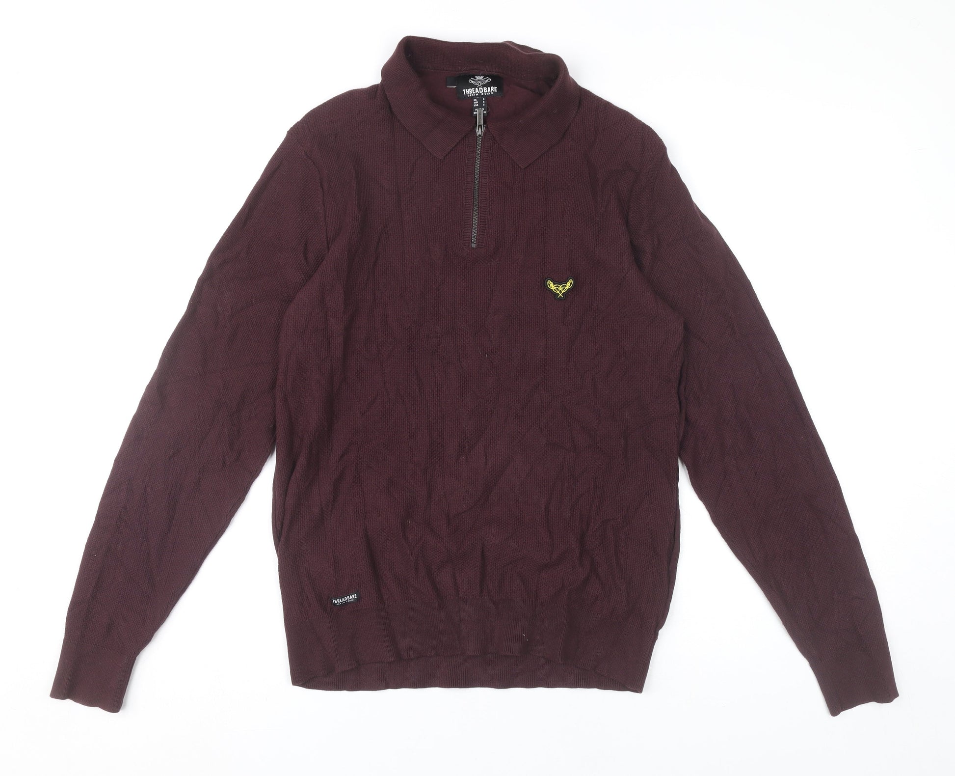 Threadbare Mens Purple Collared Half Zip Jumper Size S Cotton Blend