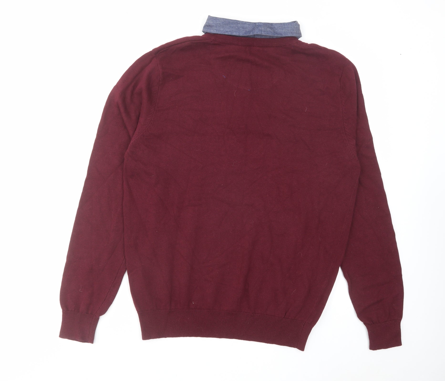 Threadbare Mens Red Collared Cotton Pullover Jumper Size L Long Sleeve
