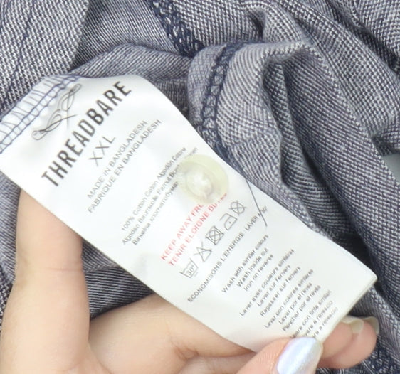 Threadbare Men's White/Blue Colourblock Polo Size 2XL