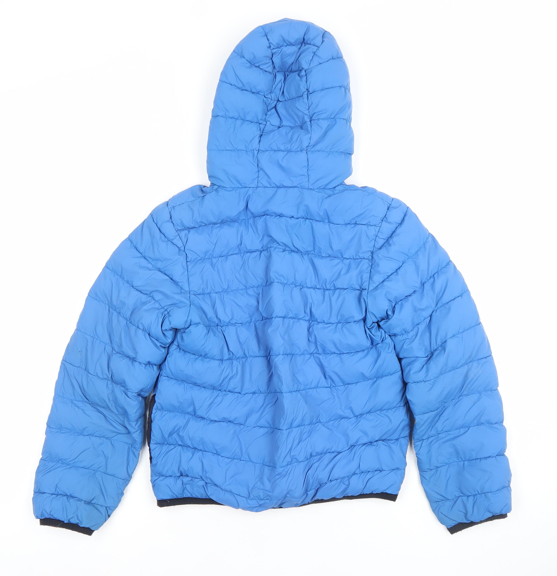Timberland Boys Blue Hooded Puffer Jacket Size 7-8 Years Full Zip Lined