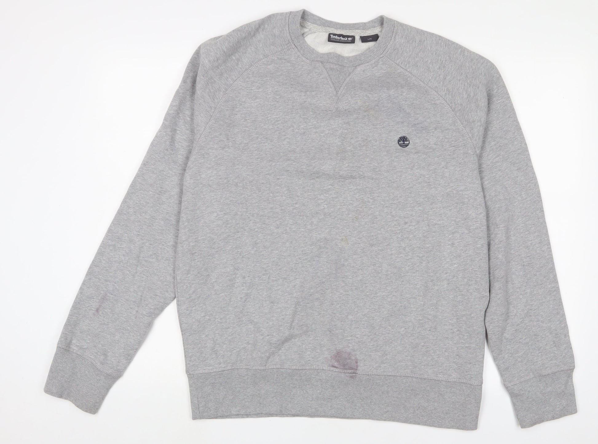 Timberland Mens Grey Cotton Pullover Sweatshirt Size L - Logo, Embroidered