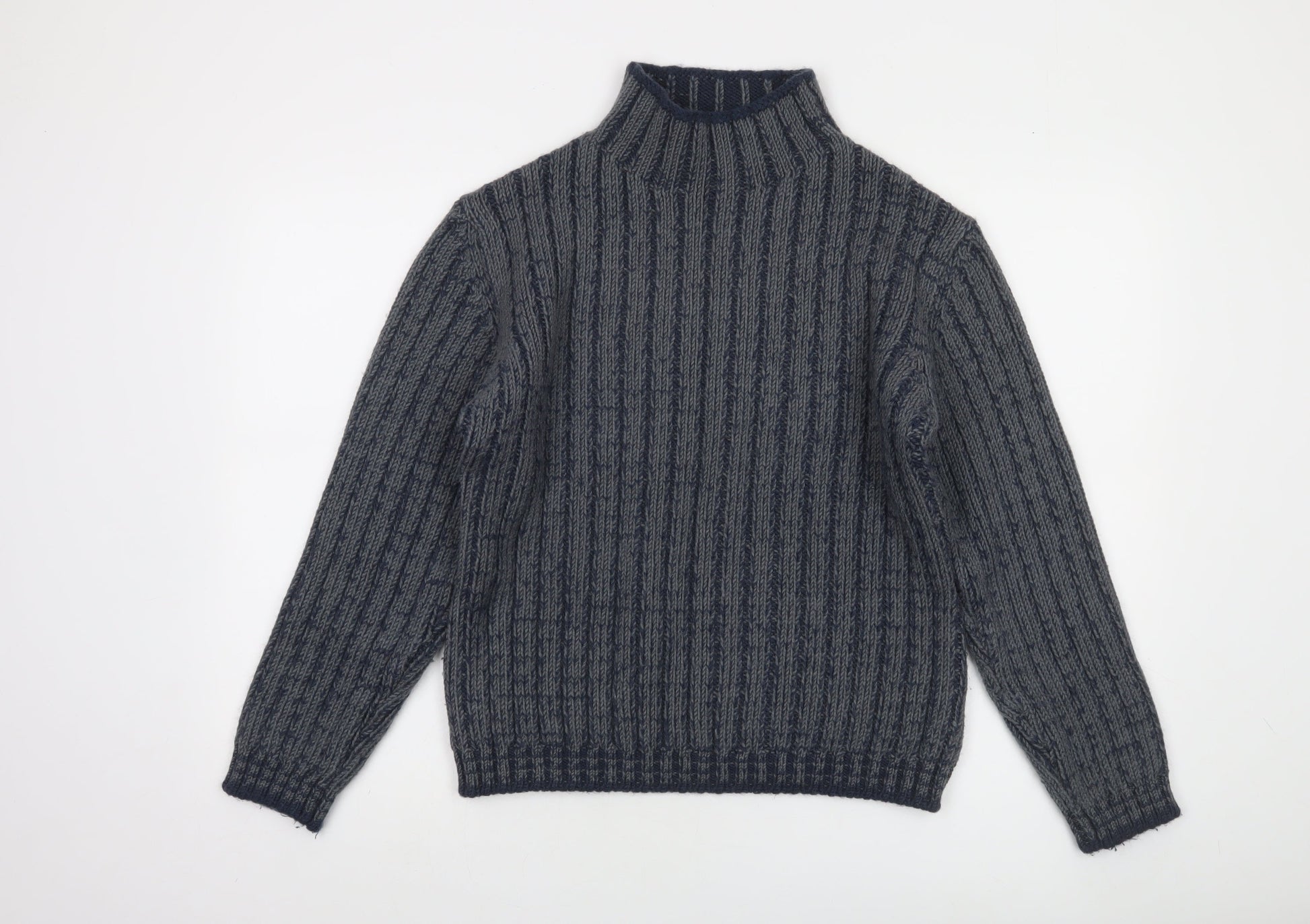 Timberland Men's Grey Wool Blend Cable Knit High Neck Jumper L