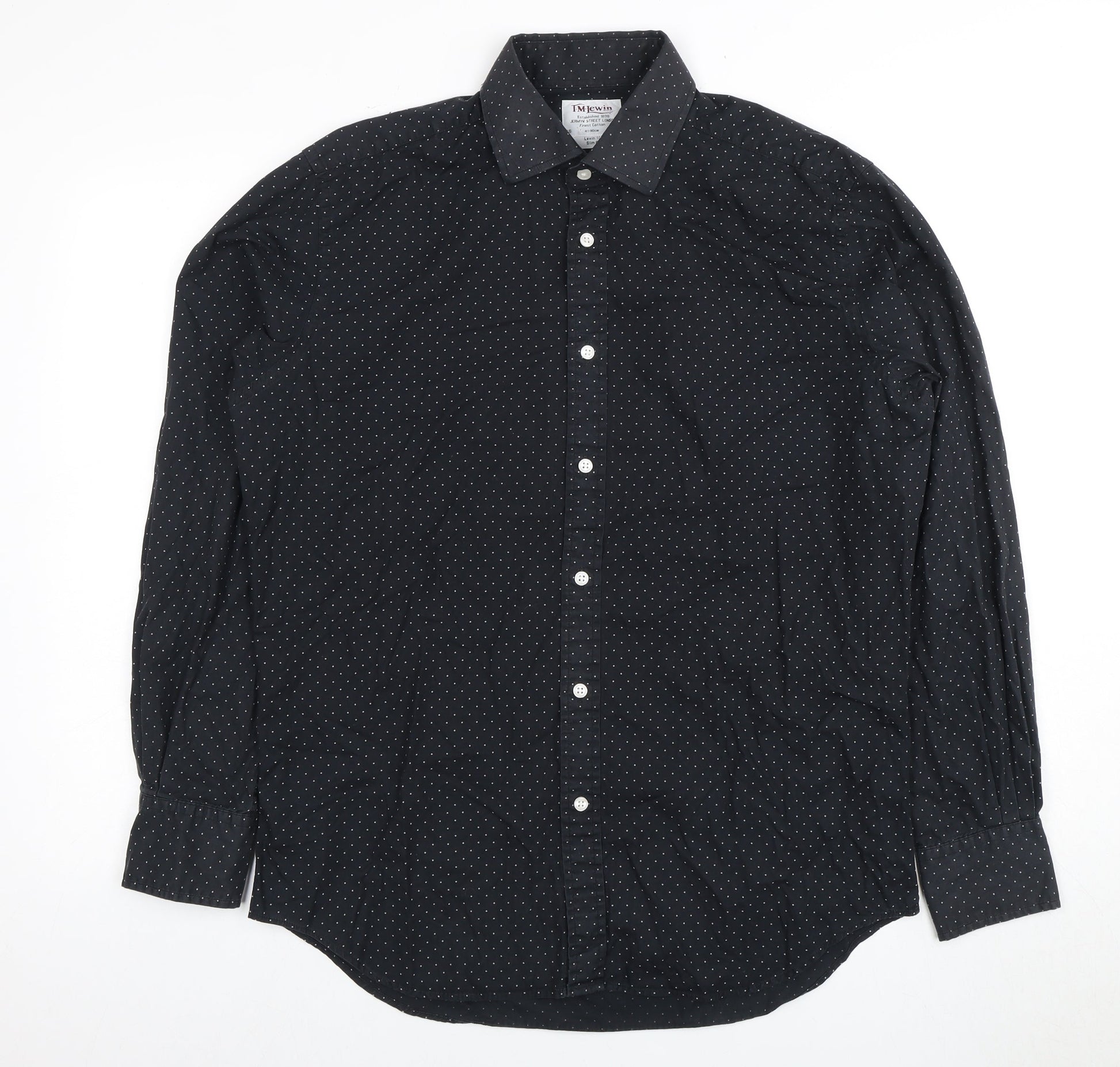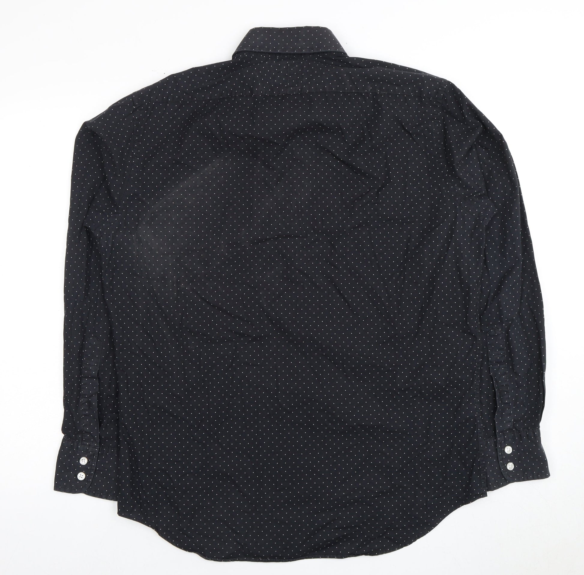 TM Lewin Men's Black Slim Fit Polka Dot Dress Shirt