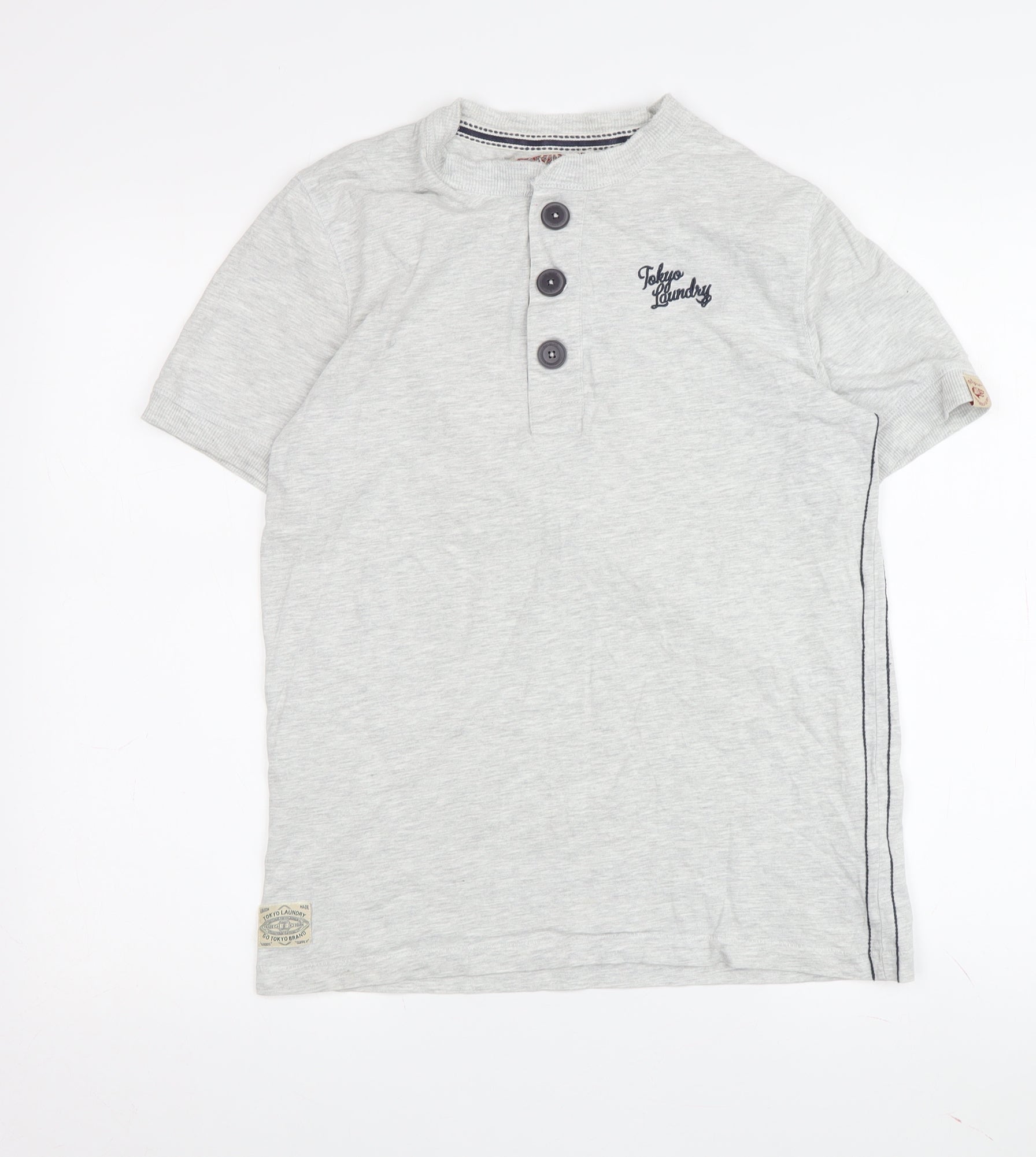 Tokyo Laundry Men's Grey Henley T-Shirt, Size S