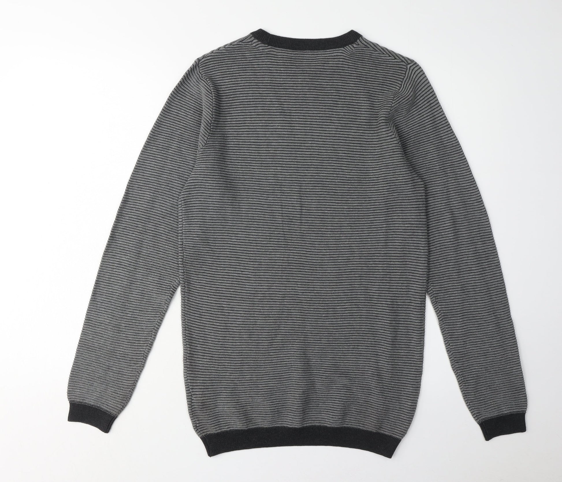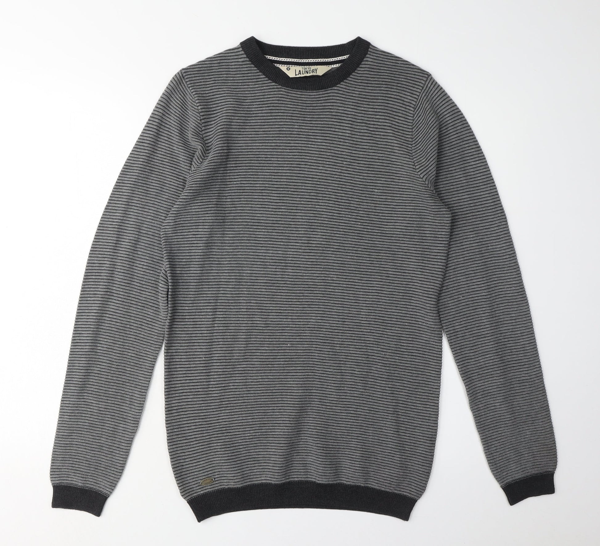 Tokyo Laundry Men's Grey Striped Pullover Jumper