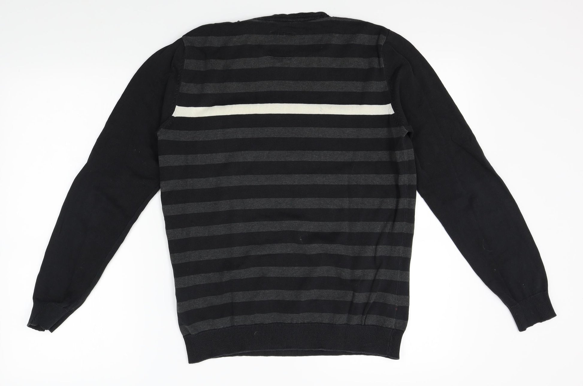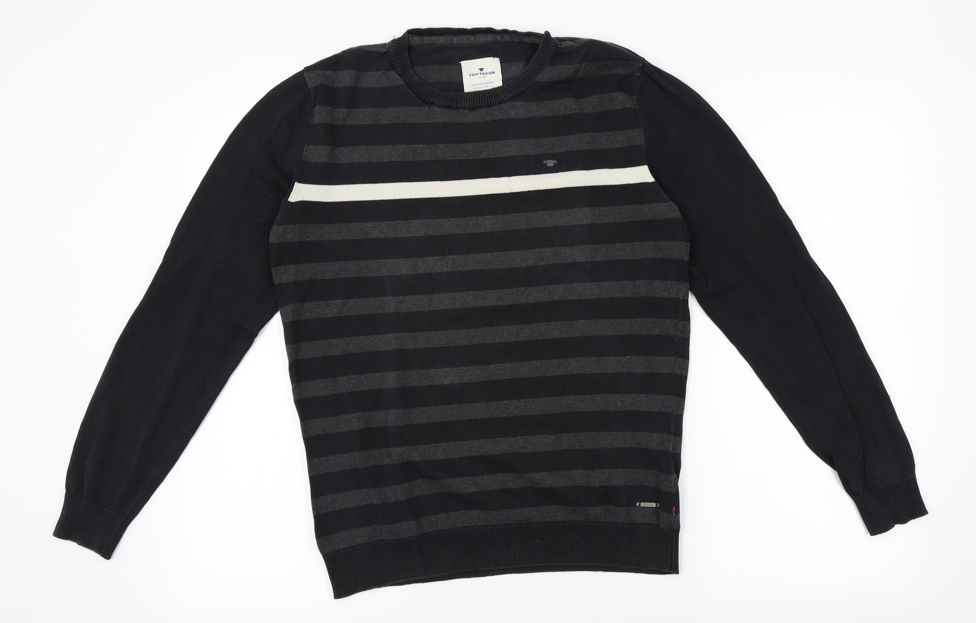 TOM TAILOR Mens Black Striped Pullover Jumper Size M