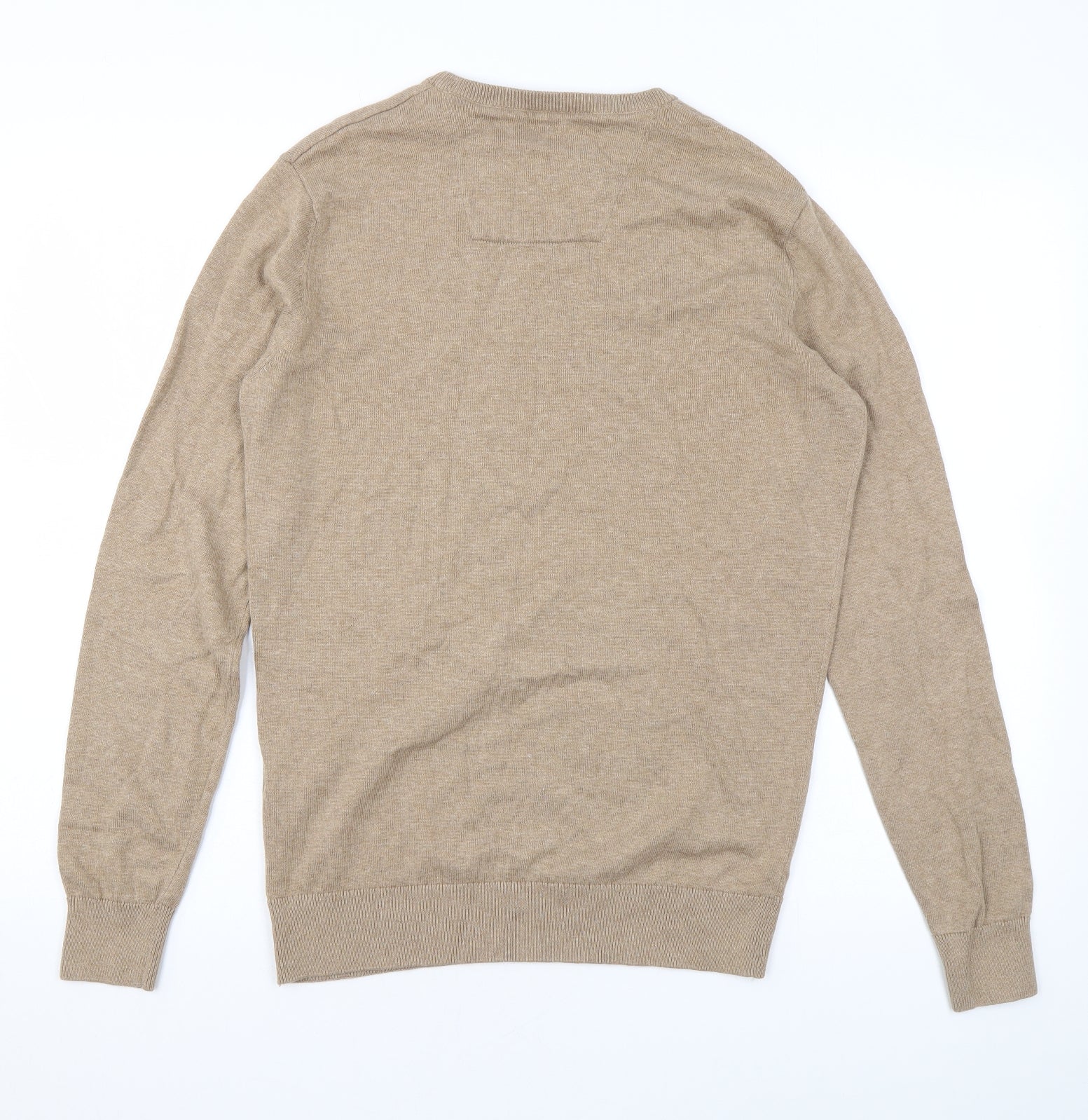 TOM TAILOR Mens Brown Round Neck Cotton Pullover Jumper Size S Long Sleeve