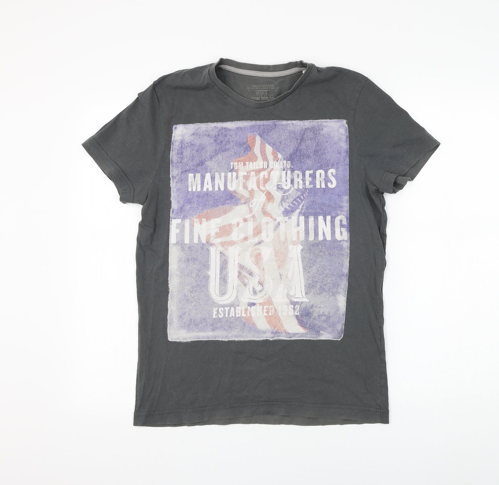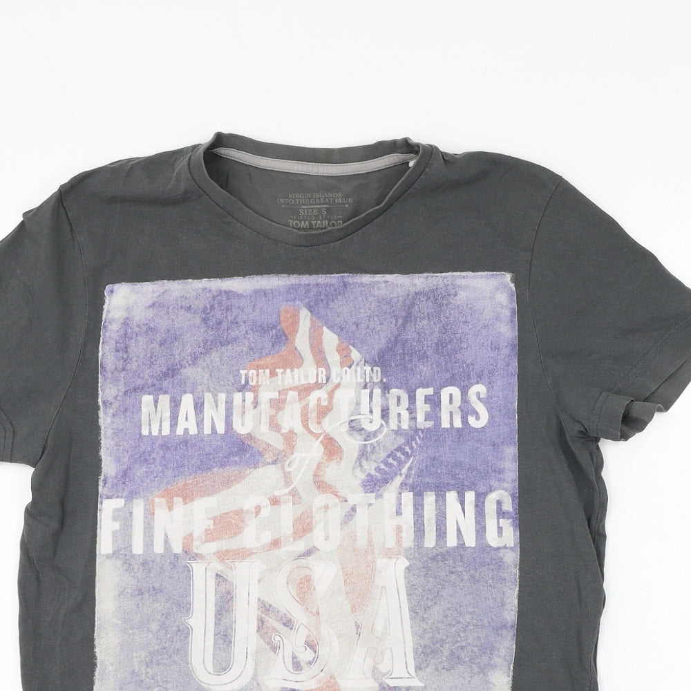 TOM TAILOR Mens Grey Polyester T-Shirt Size S Round Neck - USA