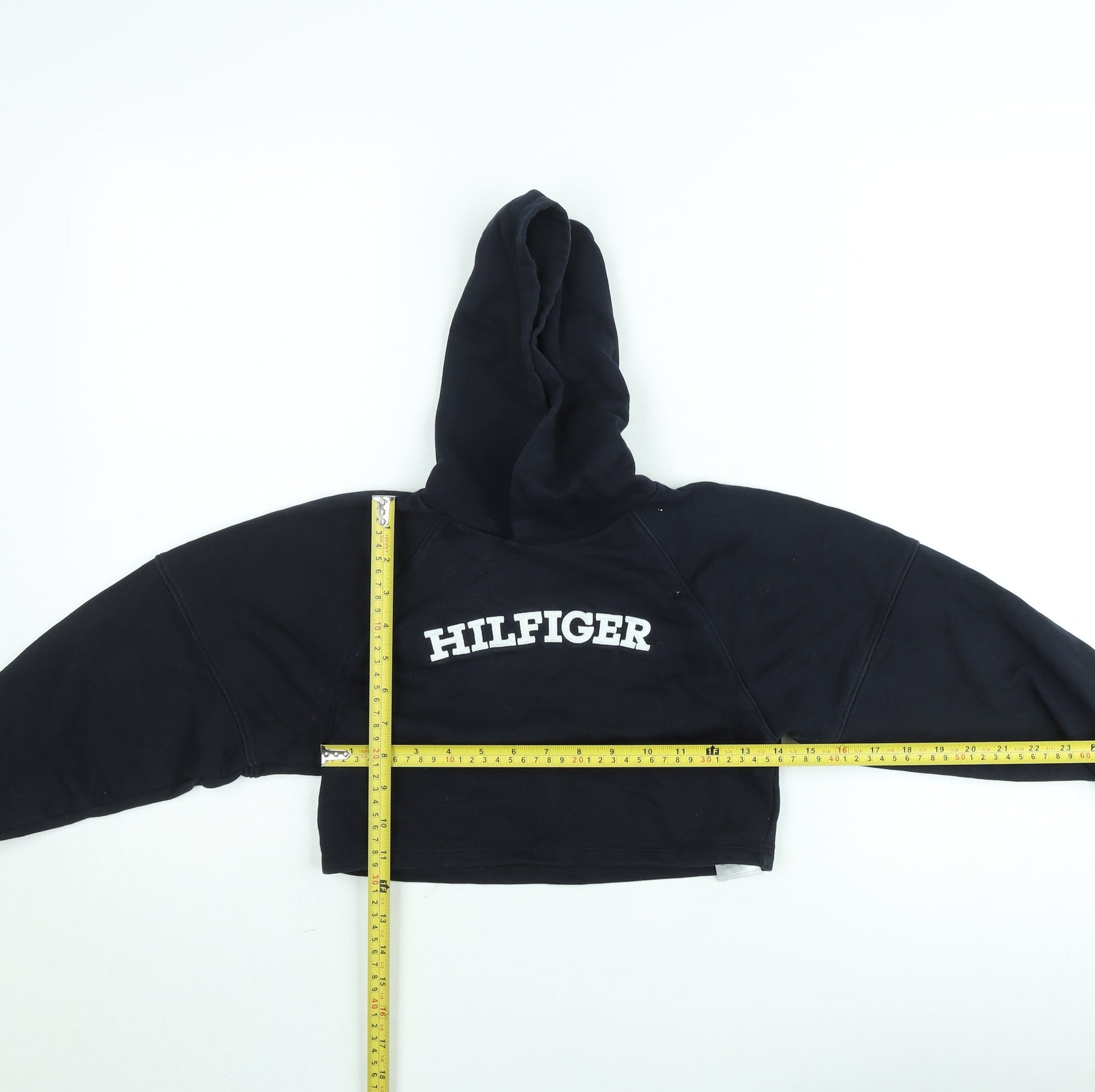Tommy Hilfiger Girls Black Hoodie 12 Years Pullover Logo Sweatshirt