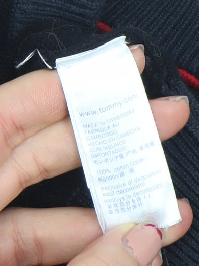 Tommy Hilfiger Men Black 2XL Crew Neck Cotton Graphic Pullover Jumper