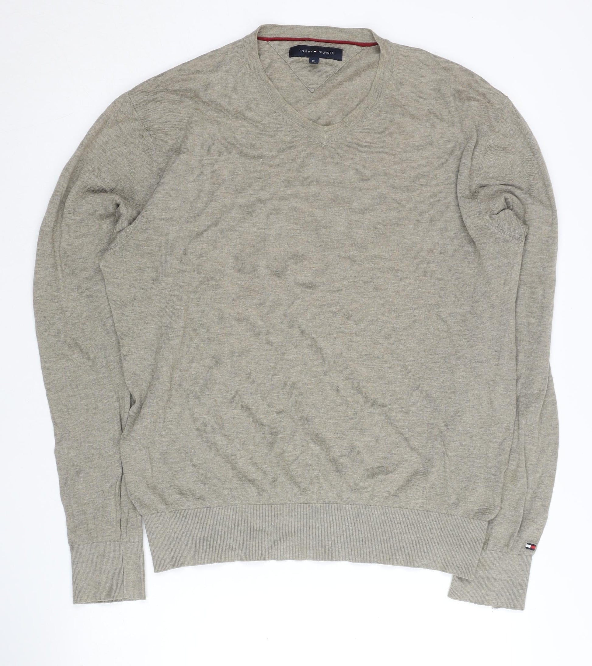 Tommy Hilfiger Men’s Beige XL V-Neck Pullover Jumper Cotton Wool Knit