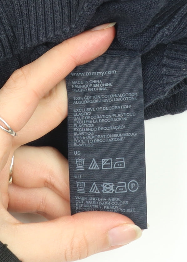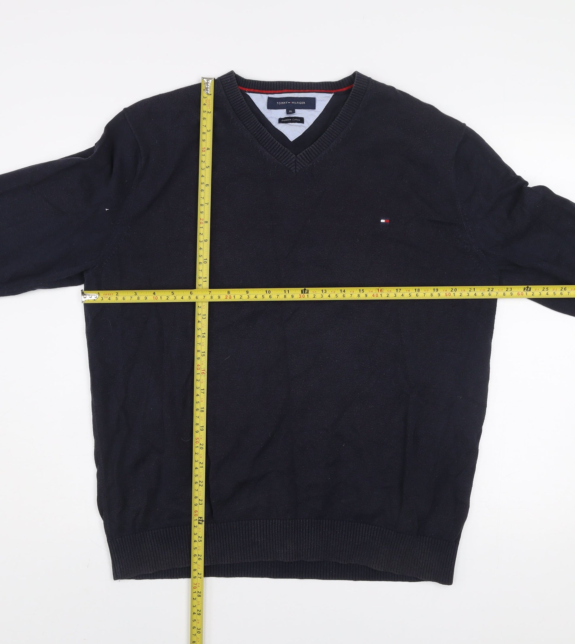 Tommy Hilfiger Men’s Blue Cotton V-Neck Jumper XL Classic Knit