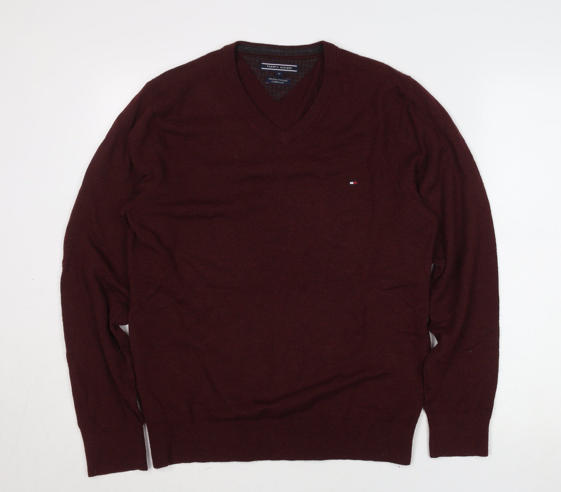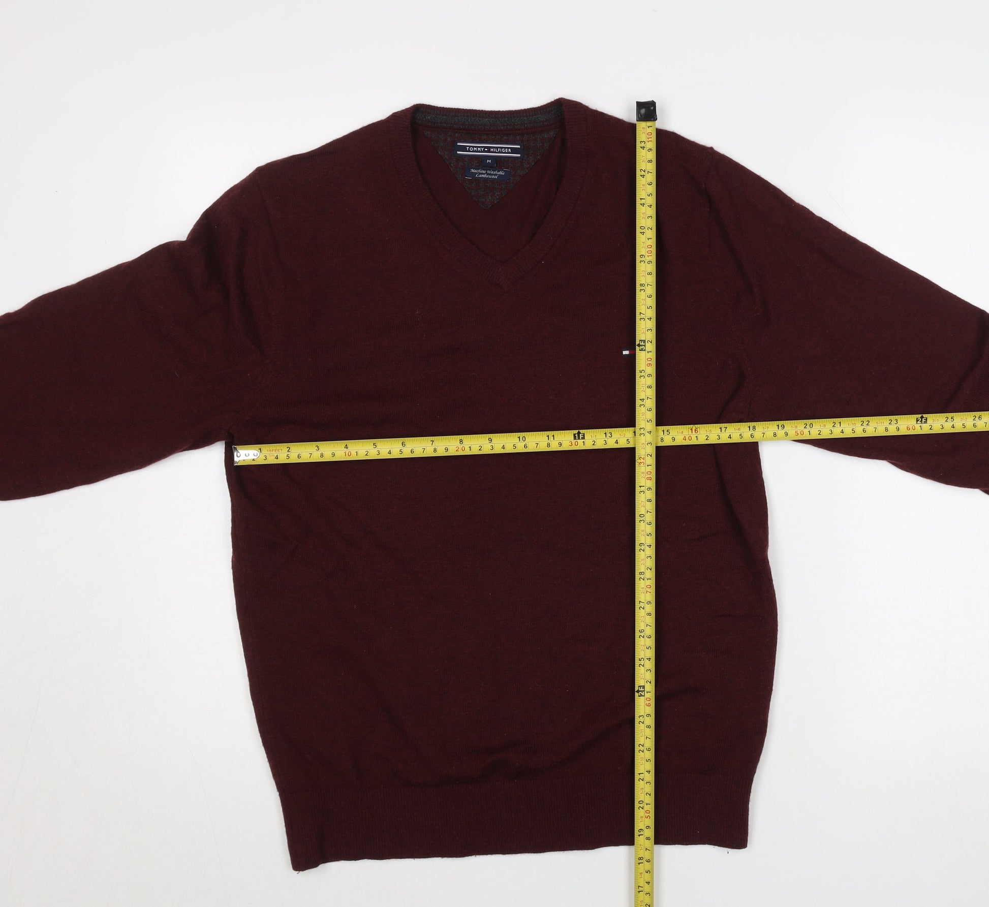 Tommy Hilfiger Men’s Red Lambswool V-Neck Jumper M
