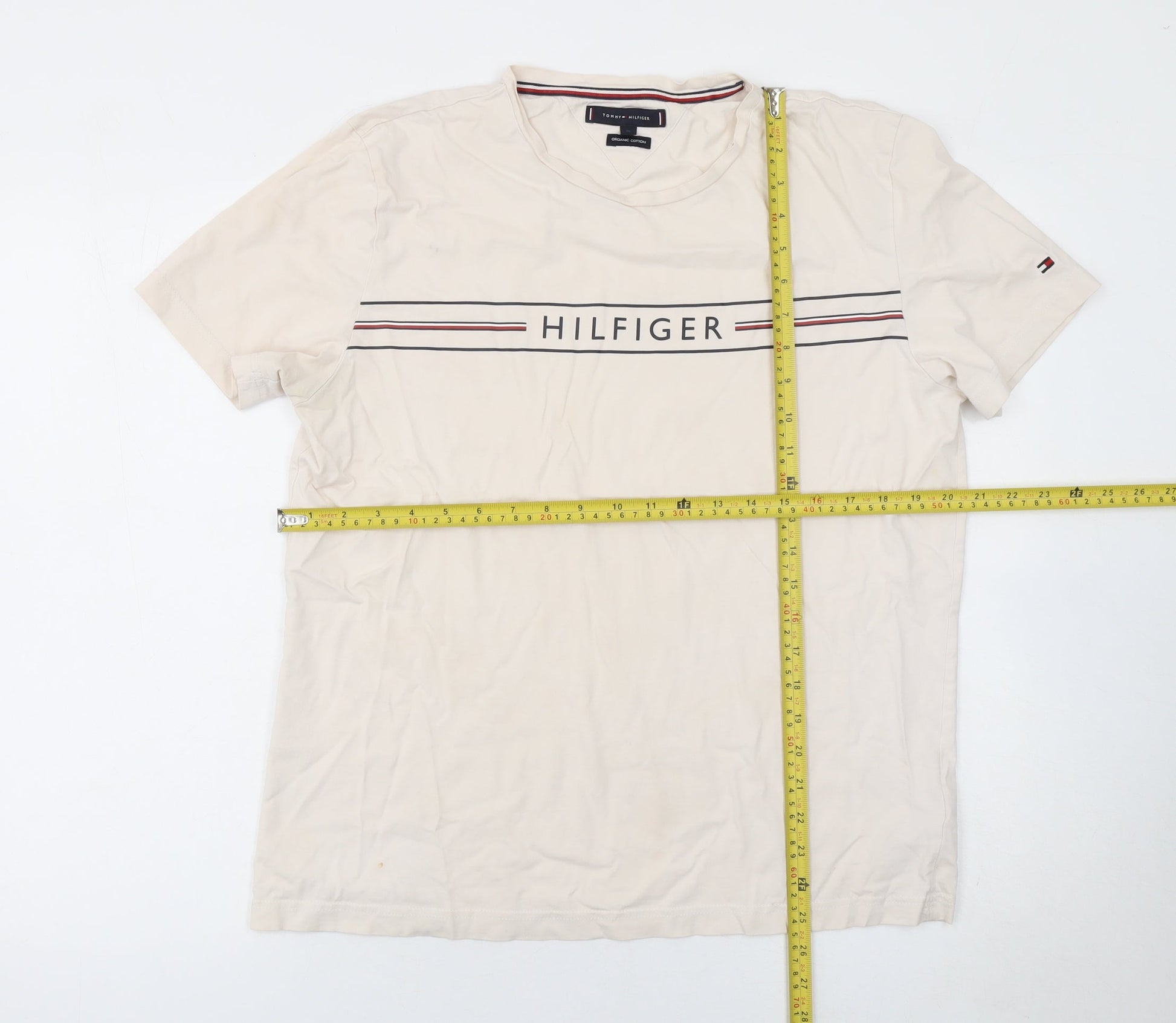 Tommy Hilfiger Men's Beige XL Organic Cotton Logo T-Shirt