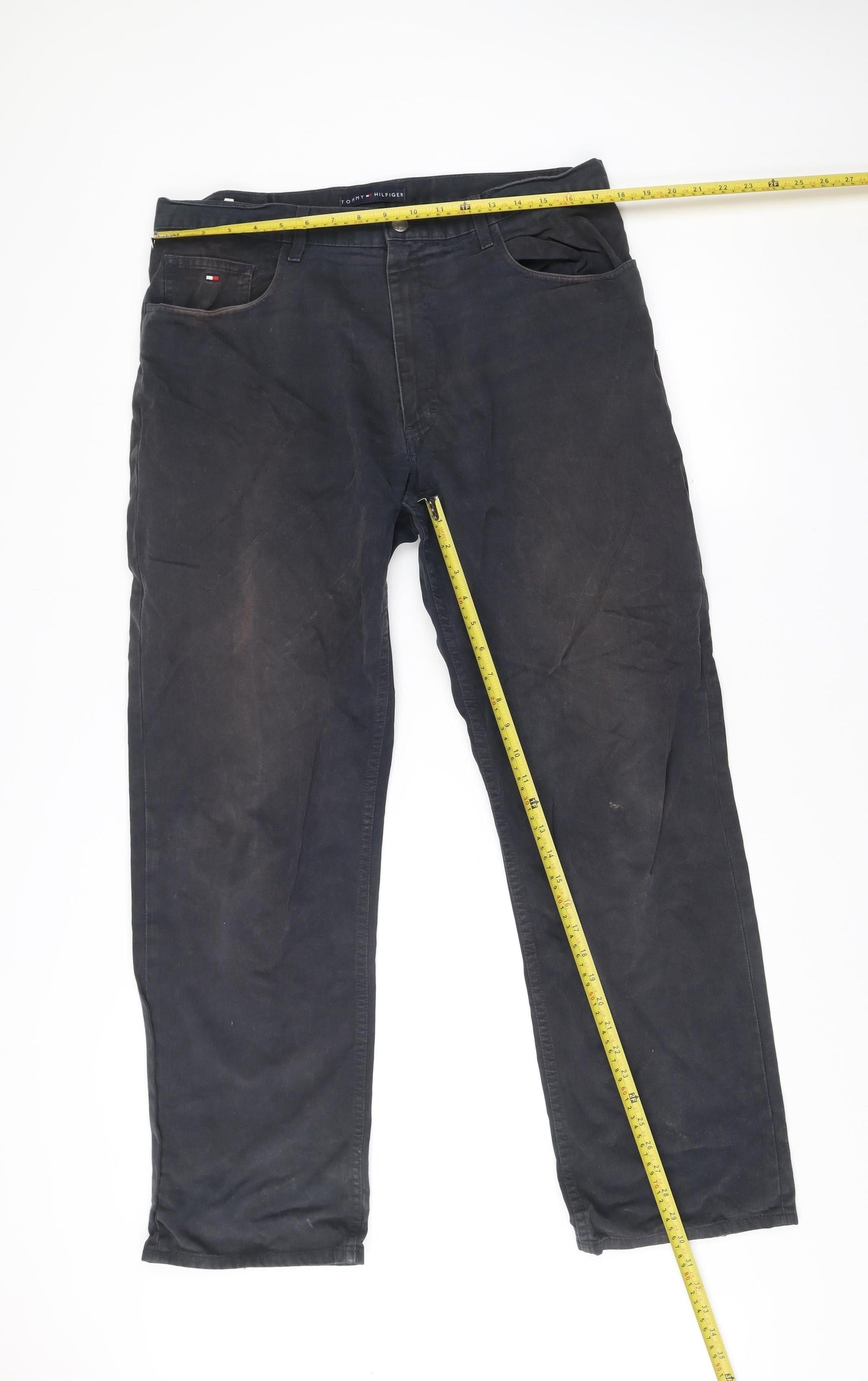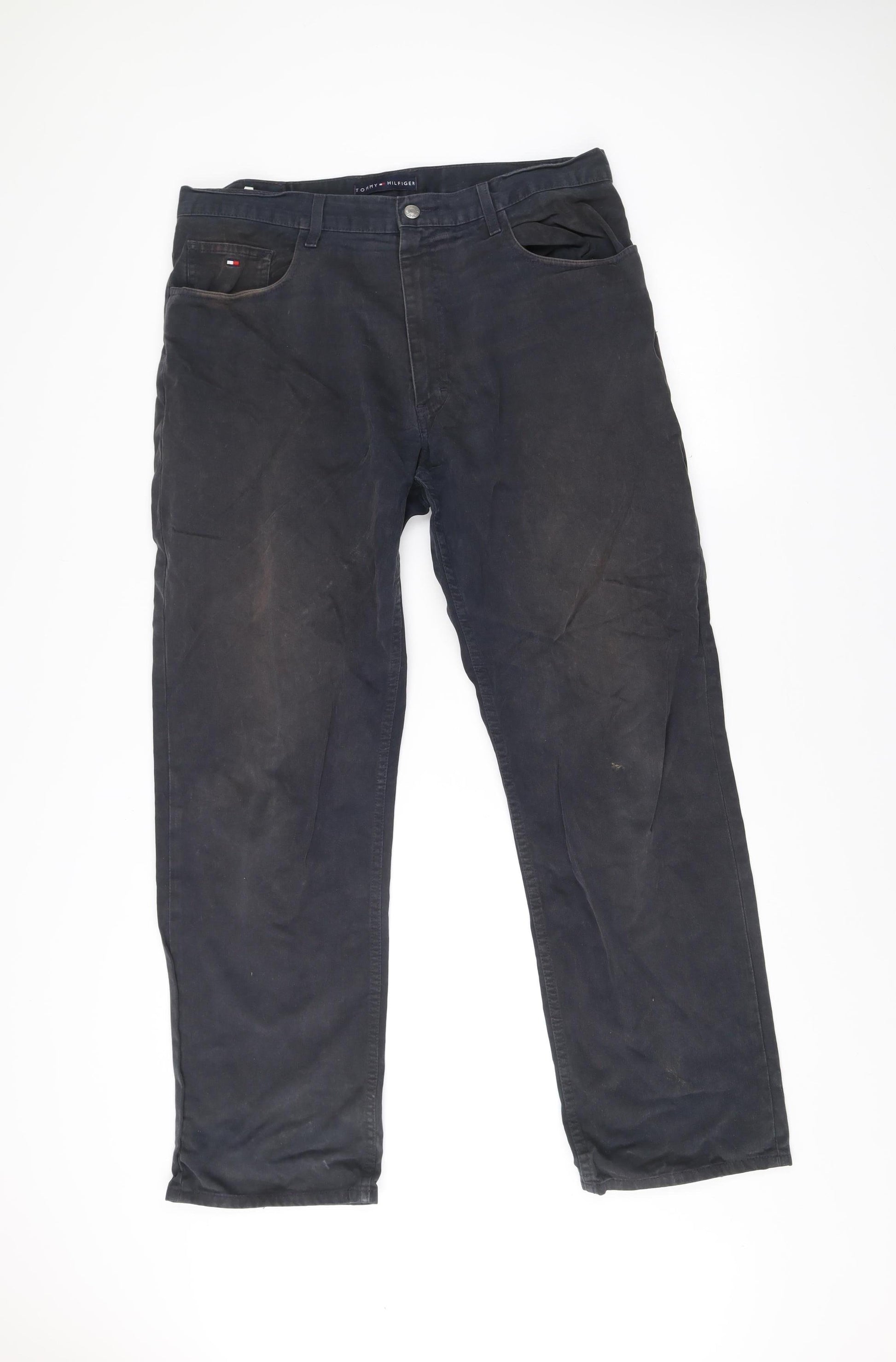 Tommy Hilfiger Mens Black Chino Trousers Size 36W 32L Straight Fit
