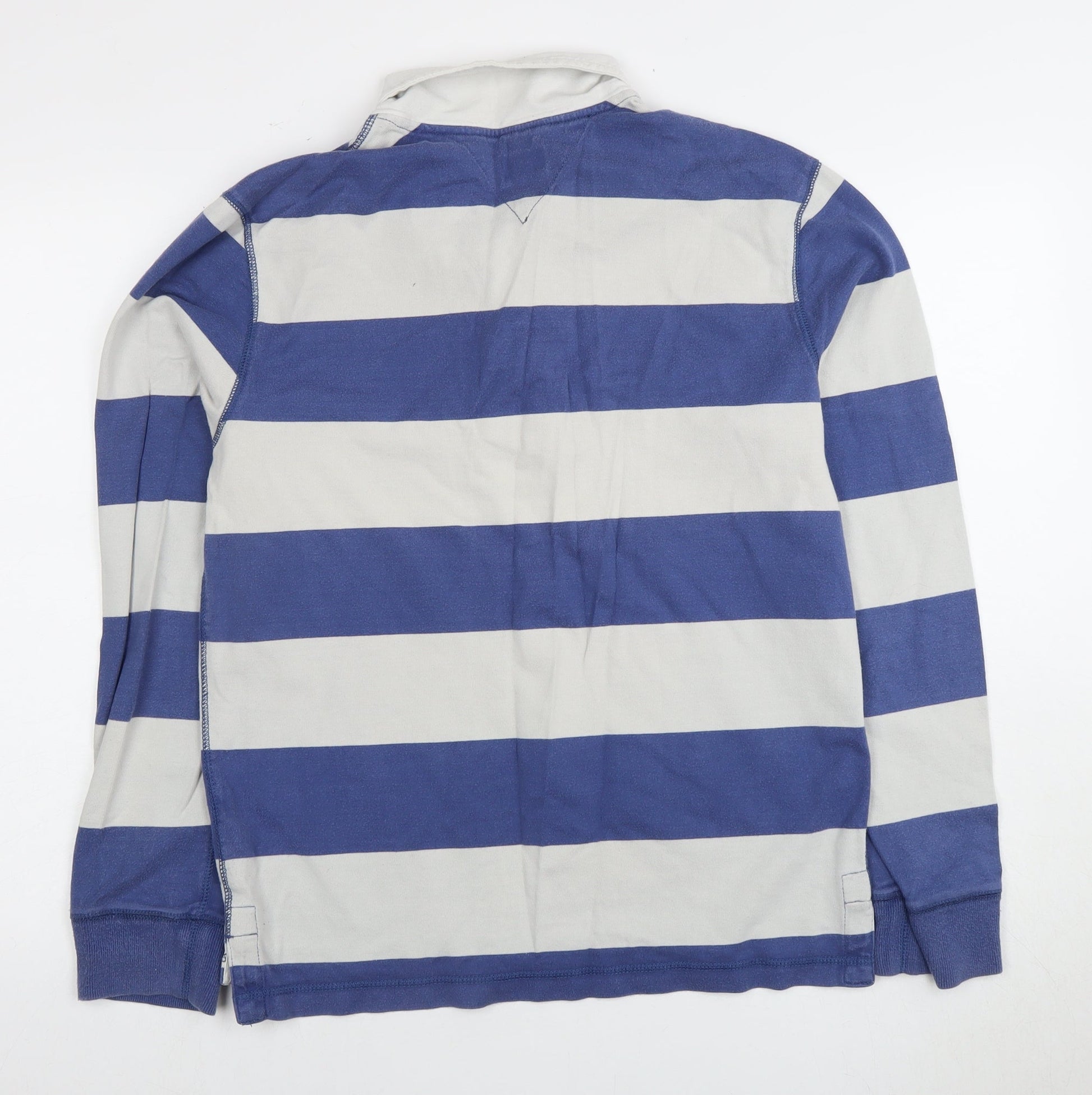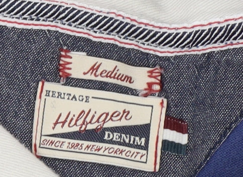 - Keywords: Tommy Hilfiger Men's Polo Blue Striped Medium Size Long Sleeve Cotton Casual Wear Classic Design Embroidered Logo