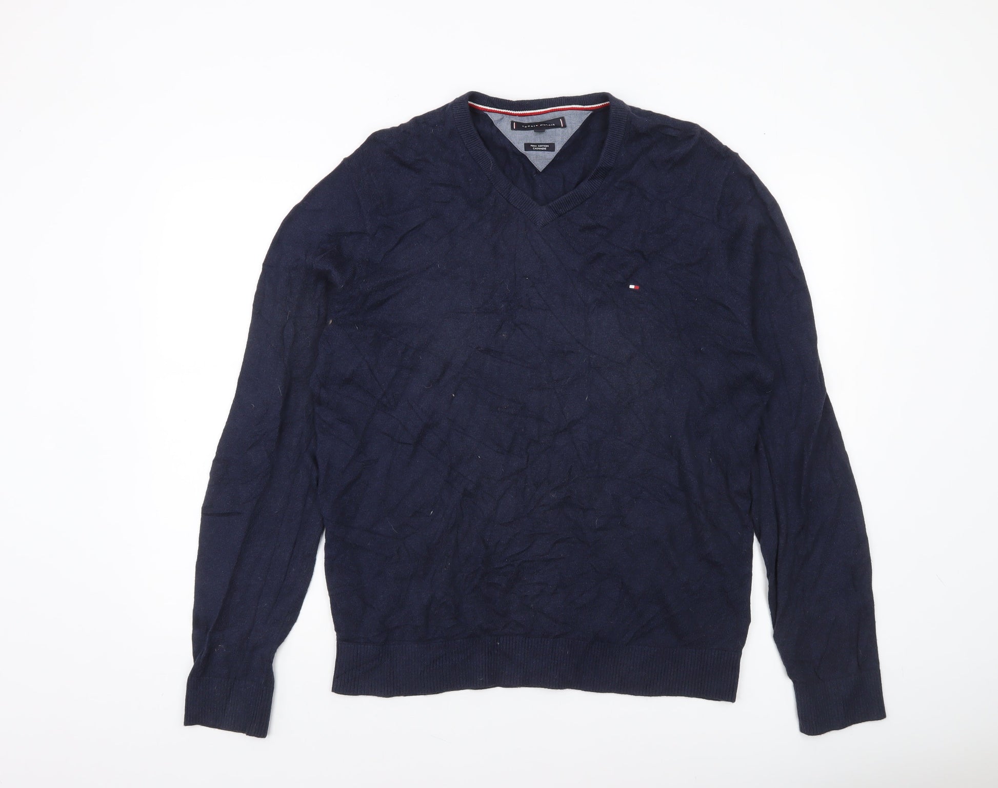 Tommy Hilfiger Men's Blue XL V-Neck Cotton Cashmere Jumper