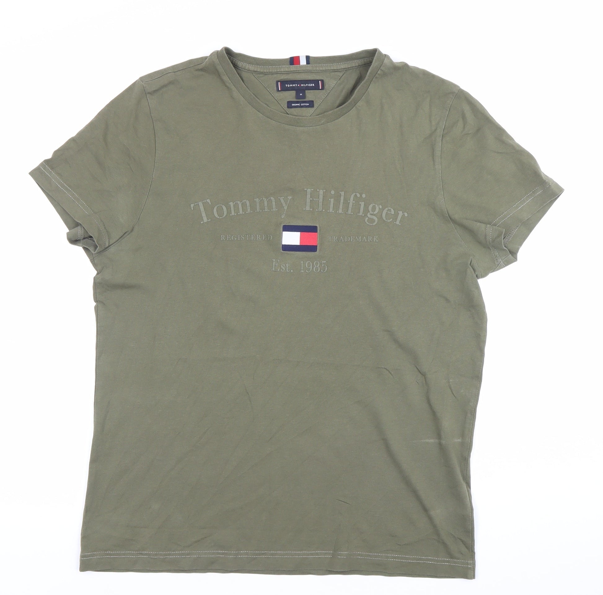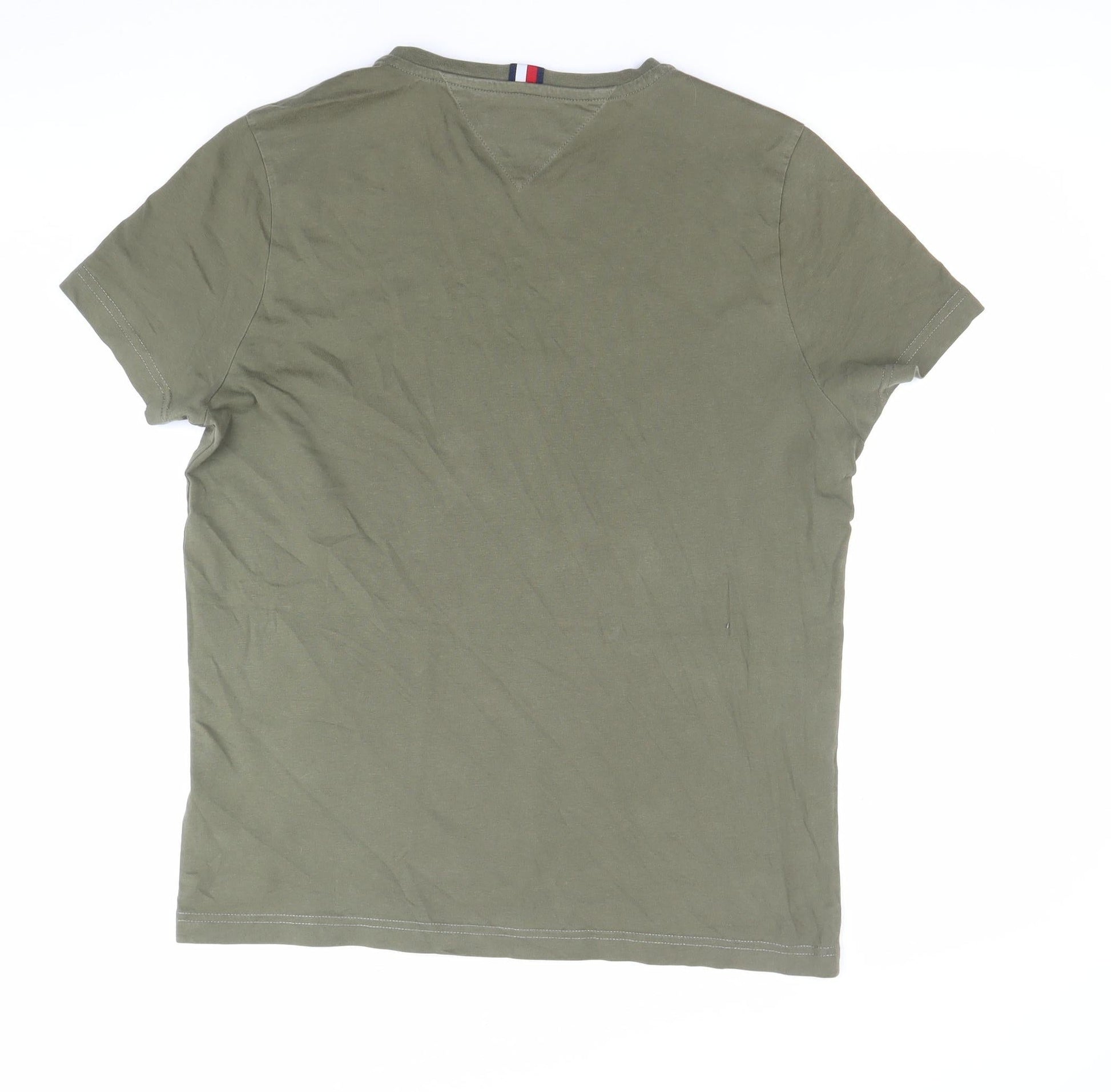 Tommy Hilfiger Men's Green Cotton Logo T-Shirt Size M