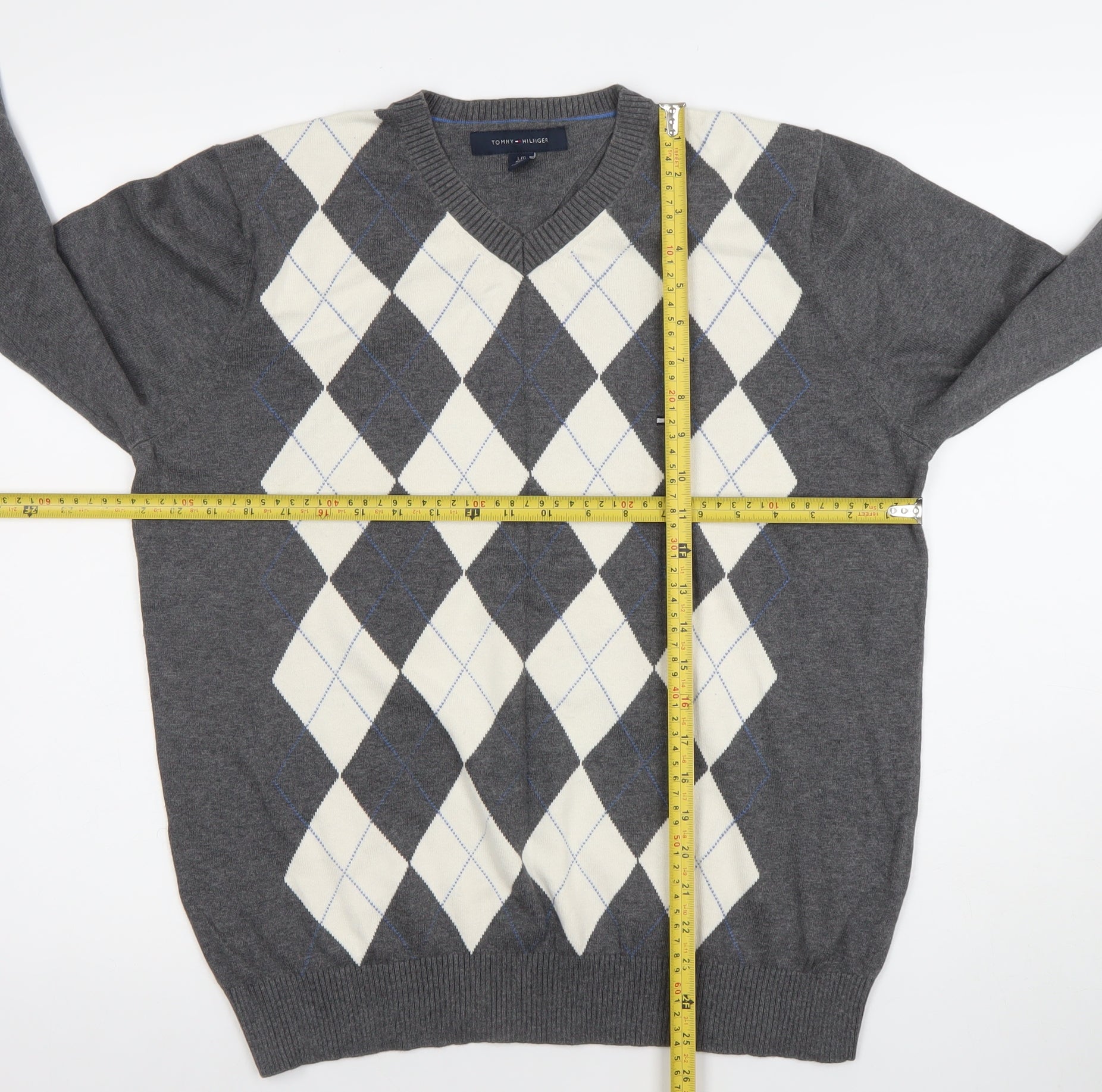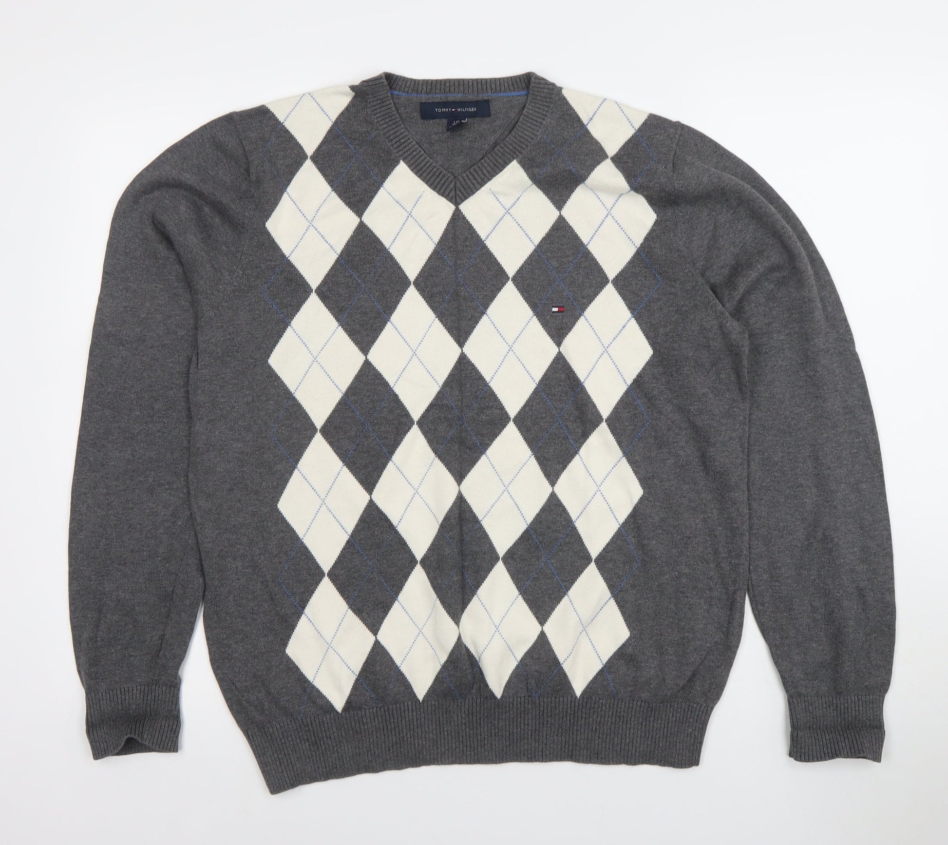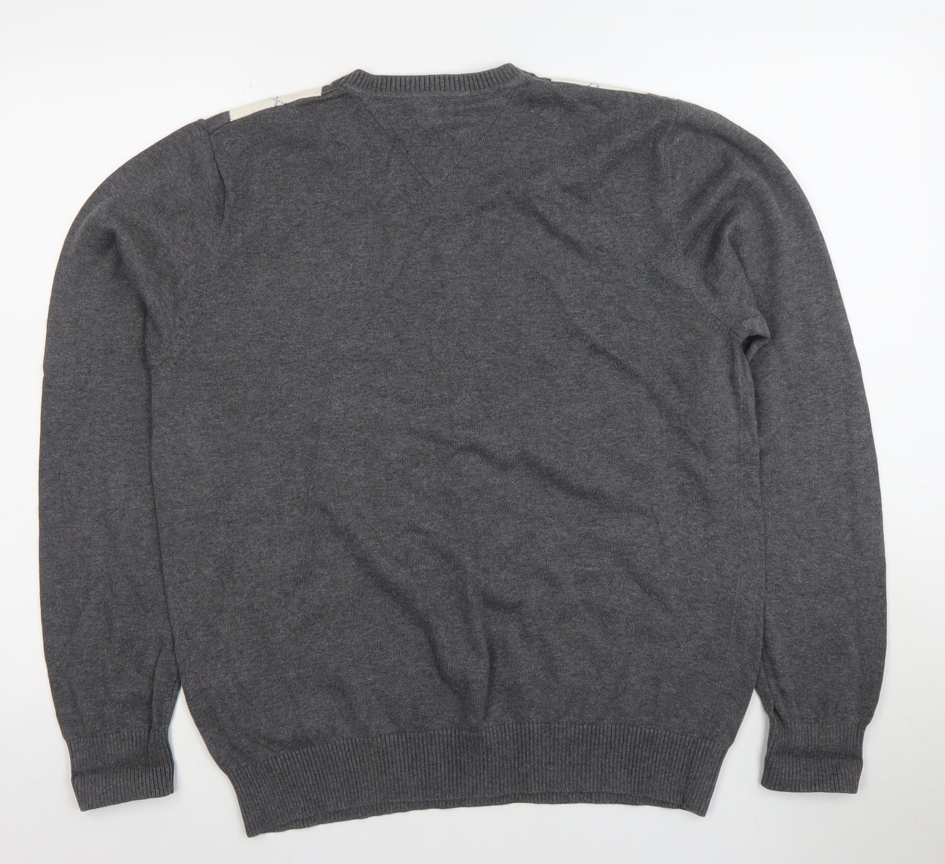 Tommy Hilfiger Men's Grey Argyle V-Neck Cotton Jumper L