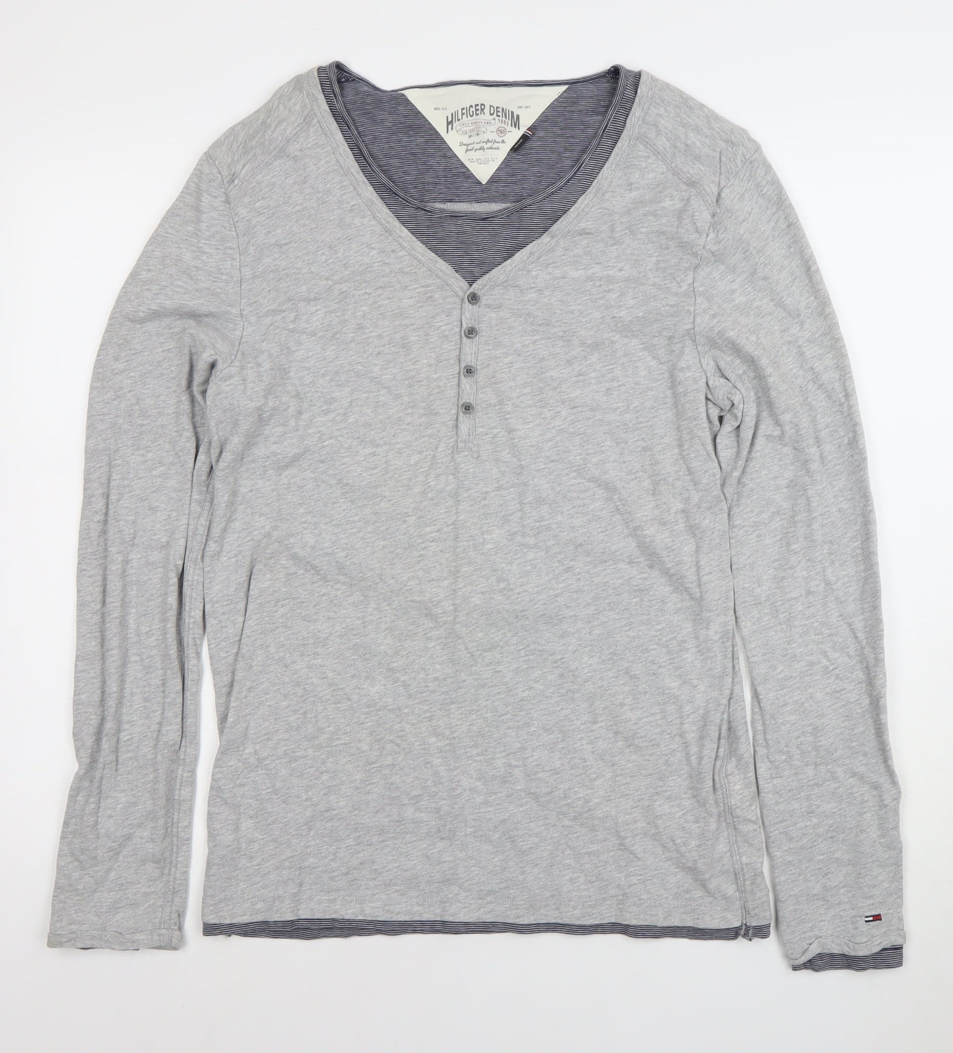 Tommy Hilfiger Men's Grey Henley Long Sleeve T-Shirt Size M