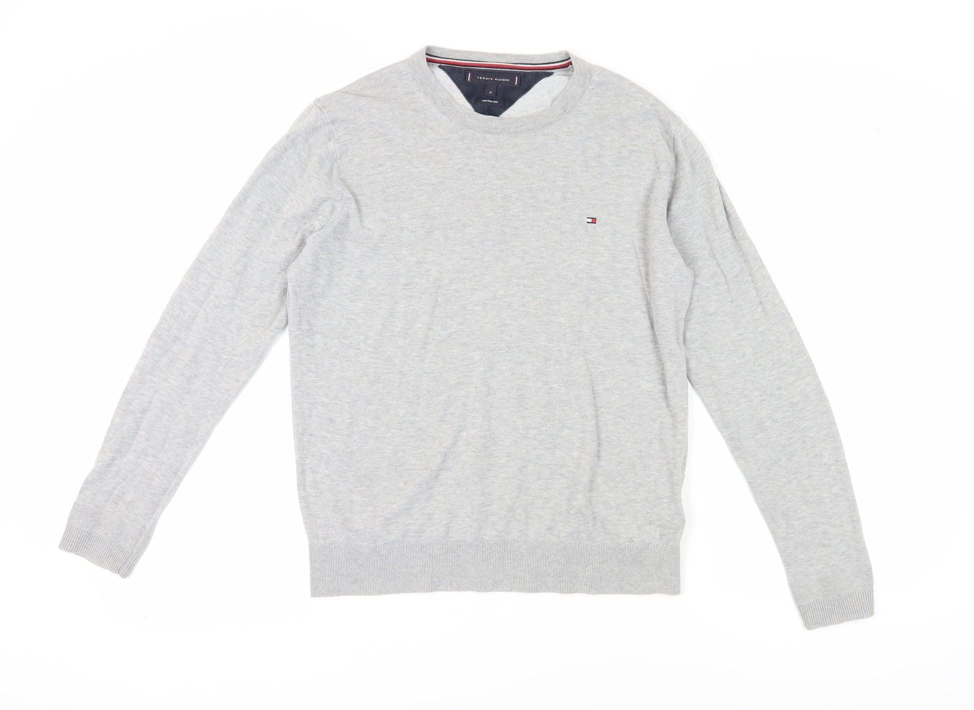 Tommy Hilfiger Men's Grey Pullover Jumper, M, Cotton Blend