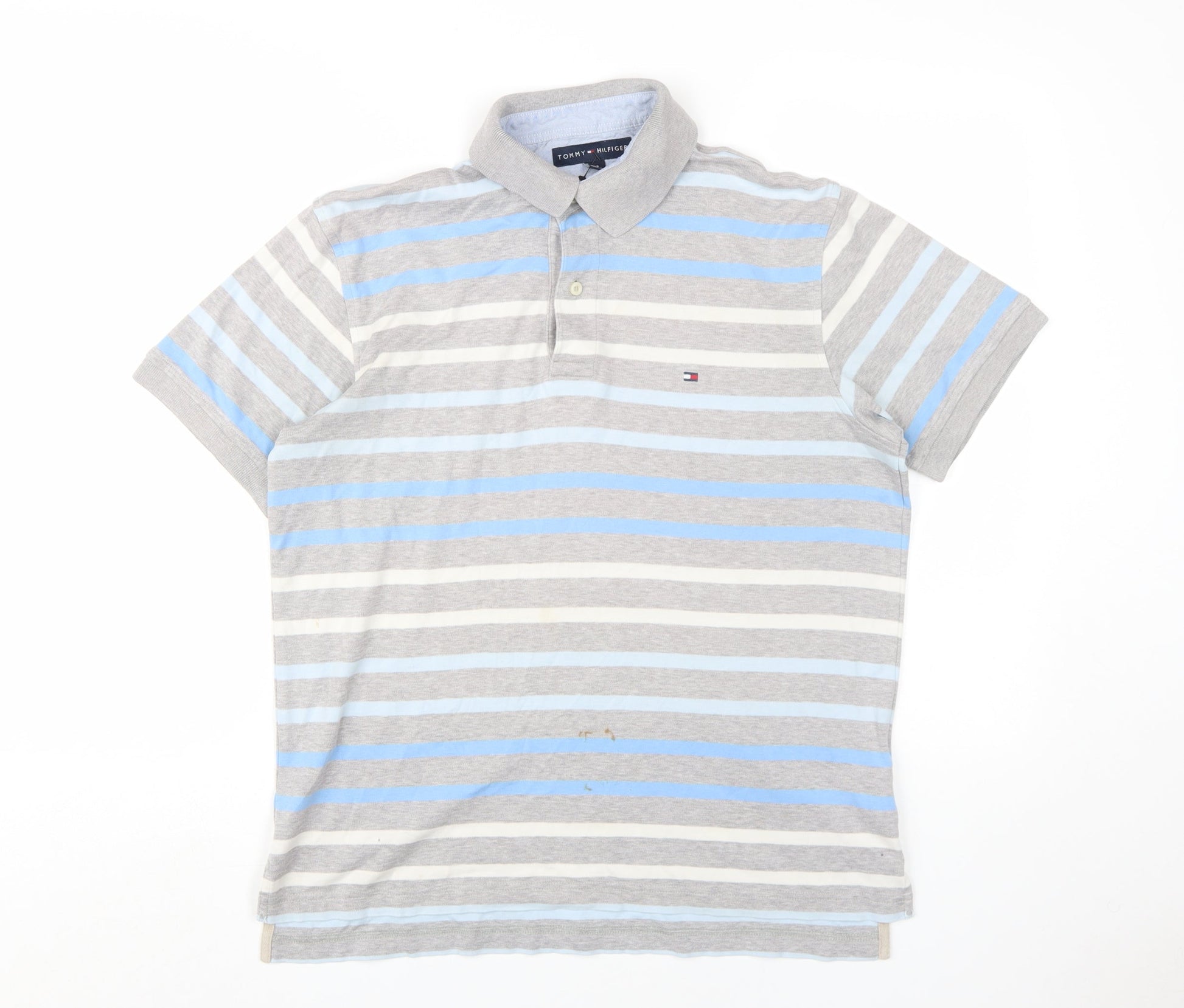 Tommy Hilfiger Men's Grey Stripe Polo Shirt Small