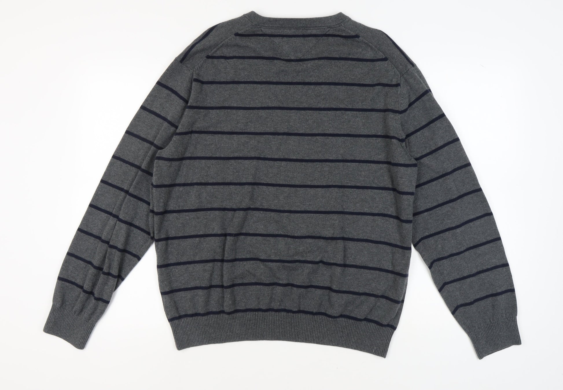 Tommy Hilfiger Men's Grey XL Striped Pullover Jumper