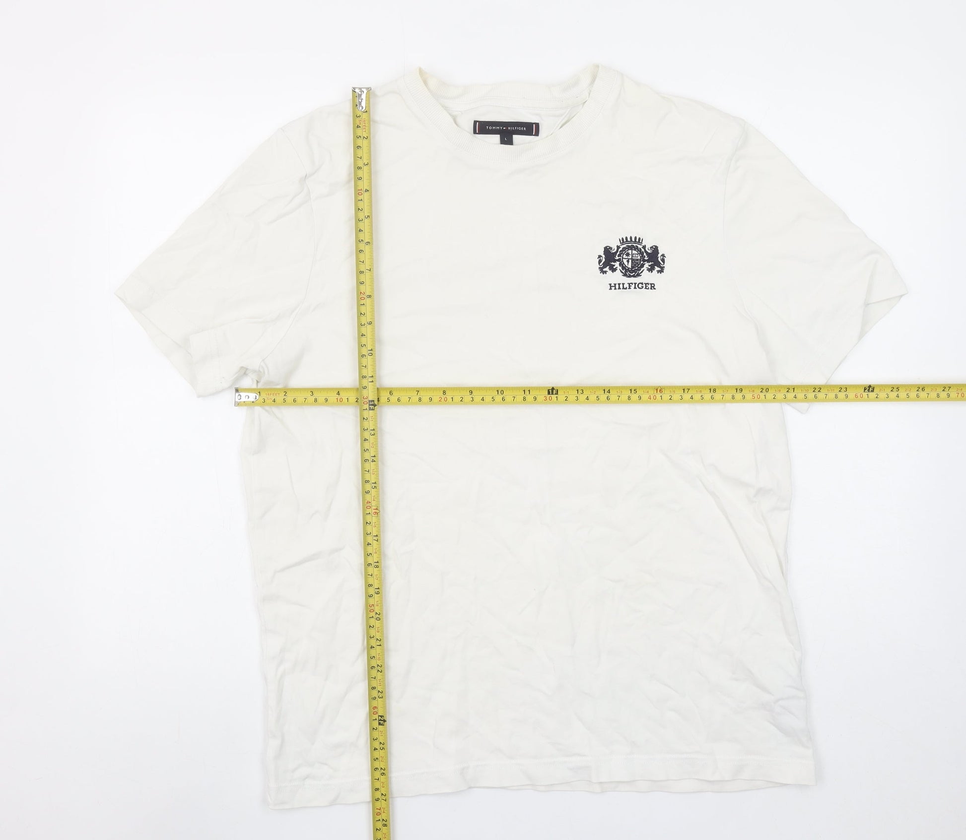 Tommy Hilfiger Men's White Cotton Regular Fit Logo T-Shirt L