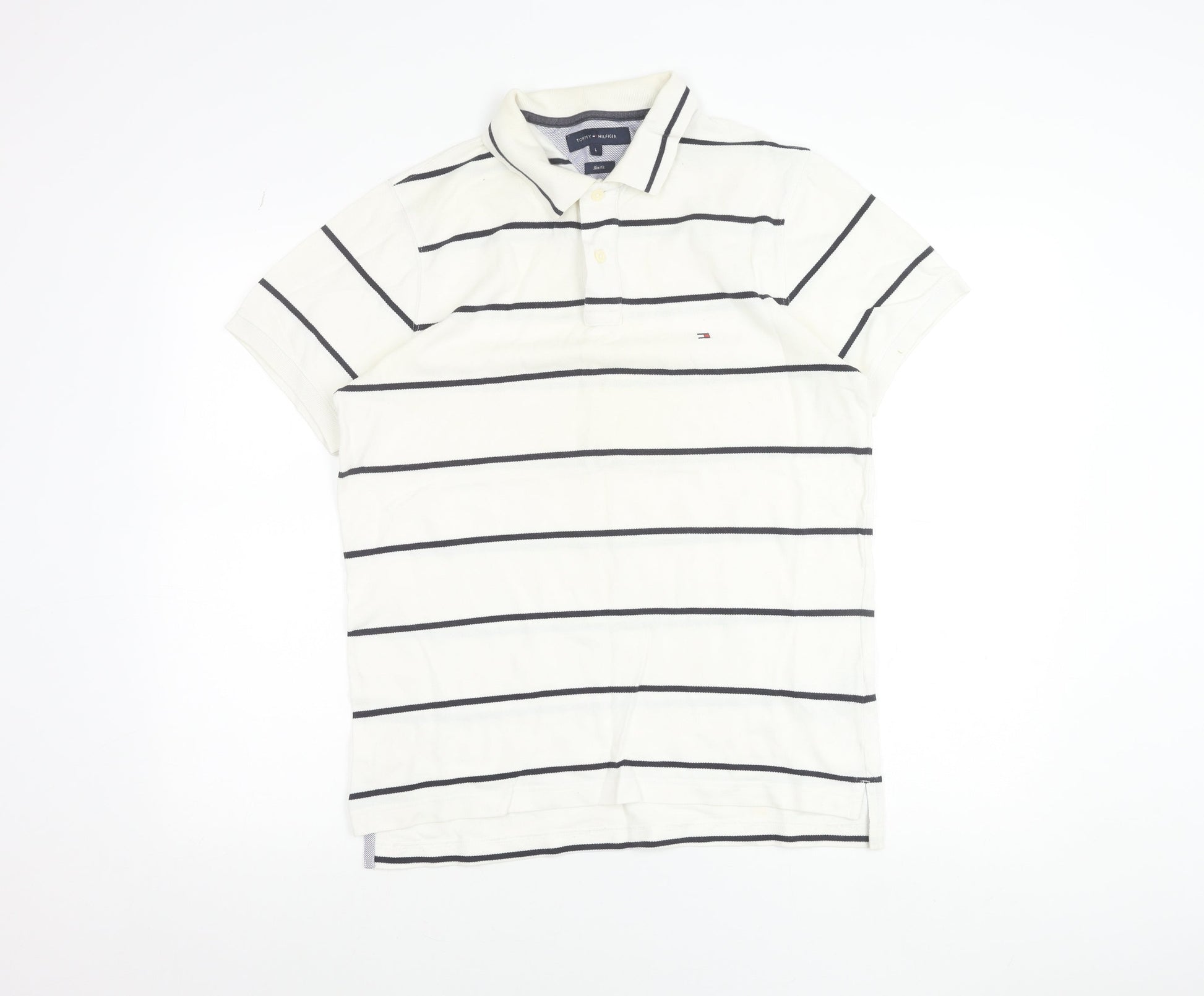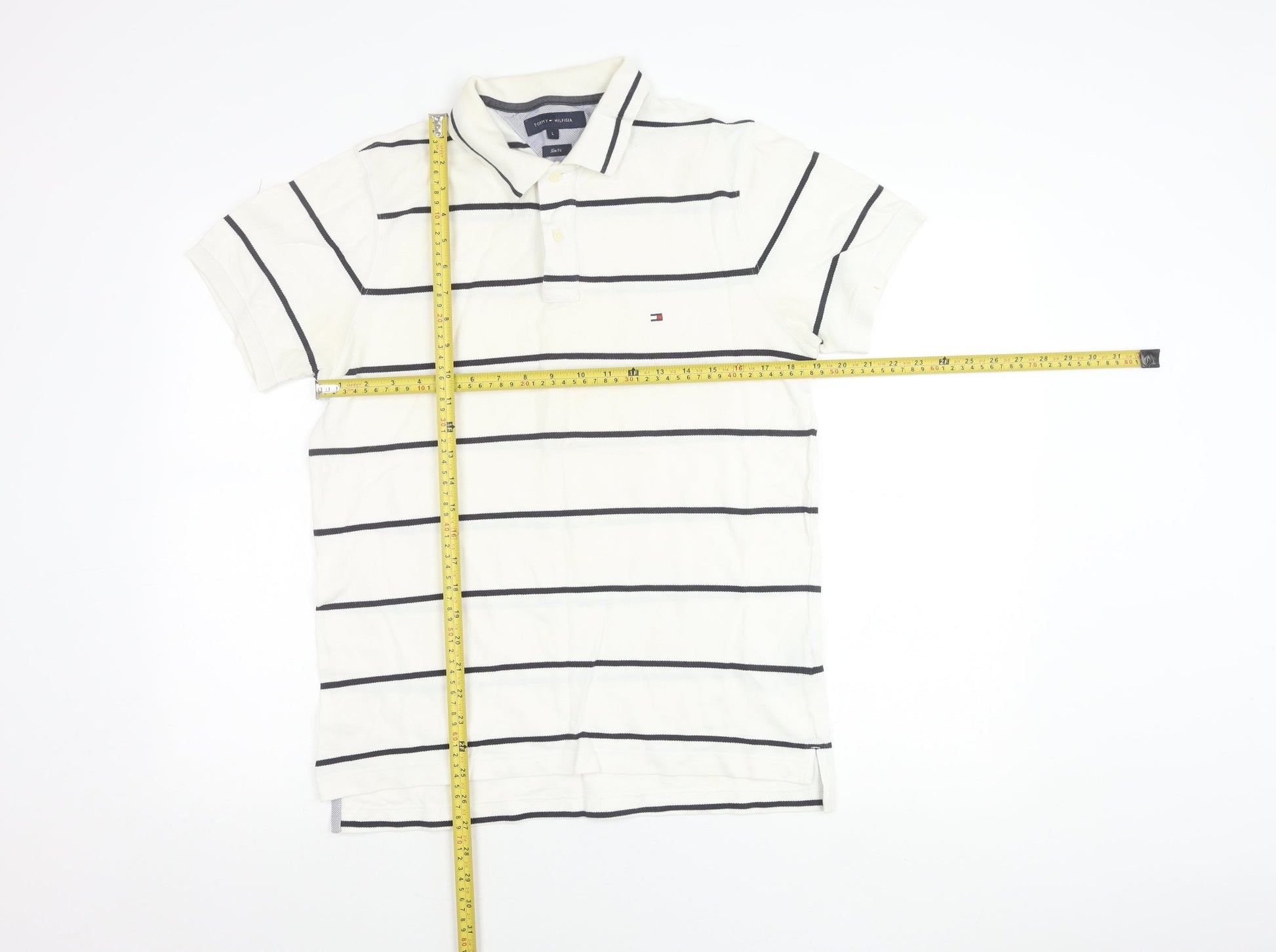 Tommy Hilfiger Men's White Striped Slim Fit Polo Shirt Size L