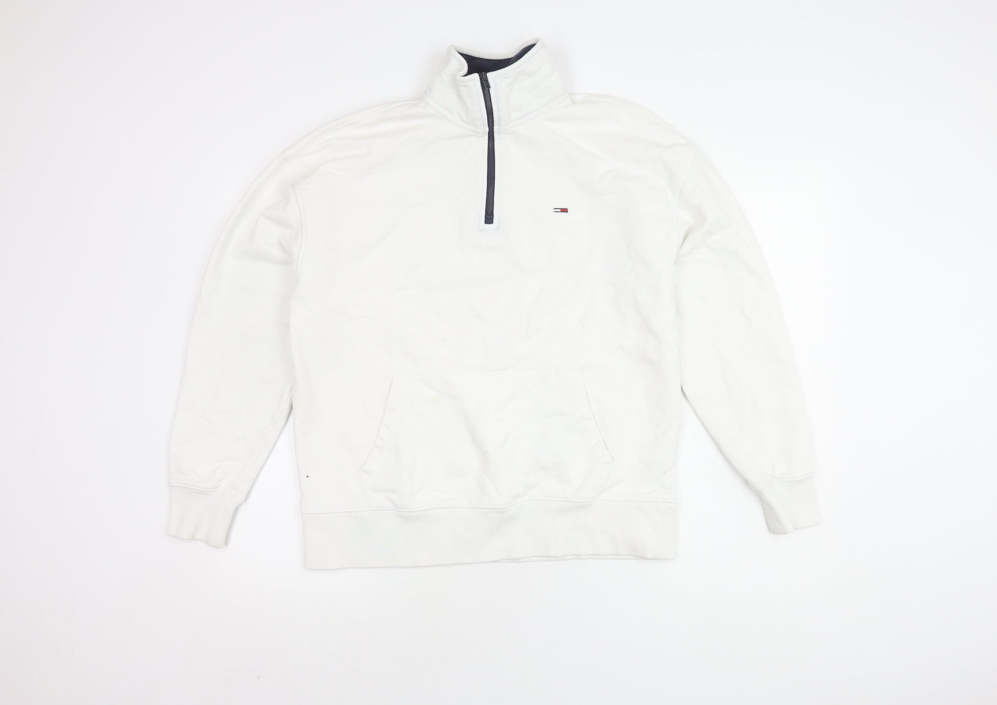 Tommy Jeans Men's White Sweatshirt S 1/2 Zip Logo