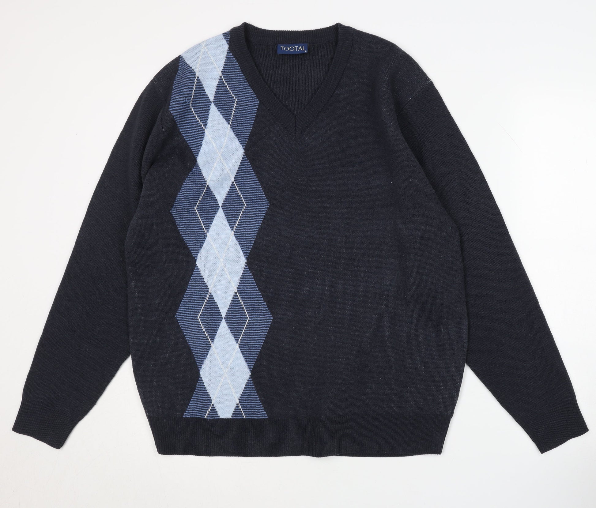 Tootal Men's Blue Argyle V-Neck Pullover Jumper L