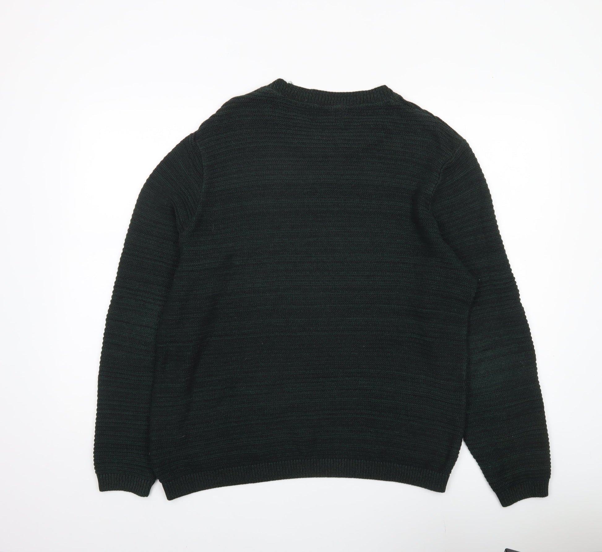 Topman Men’s Green Cotton Blend Pullover Jumper Size L Crew Neck
