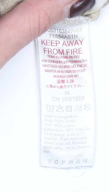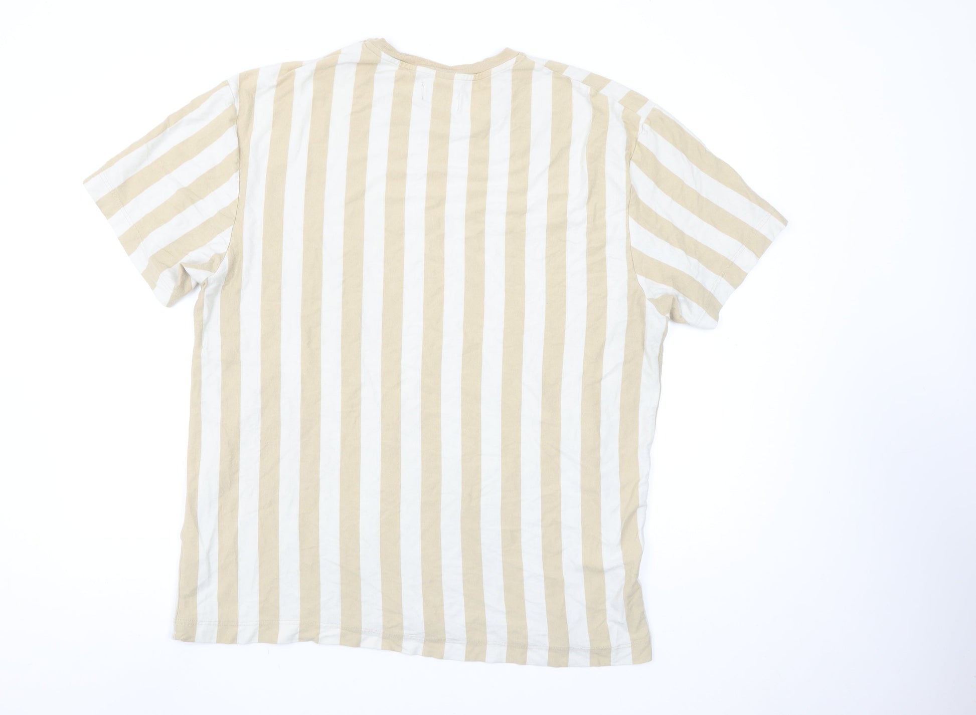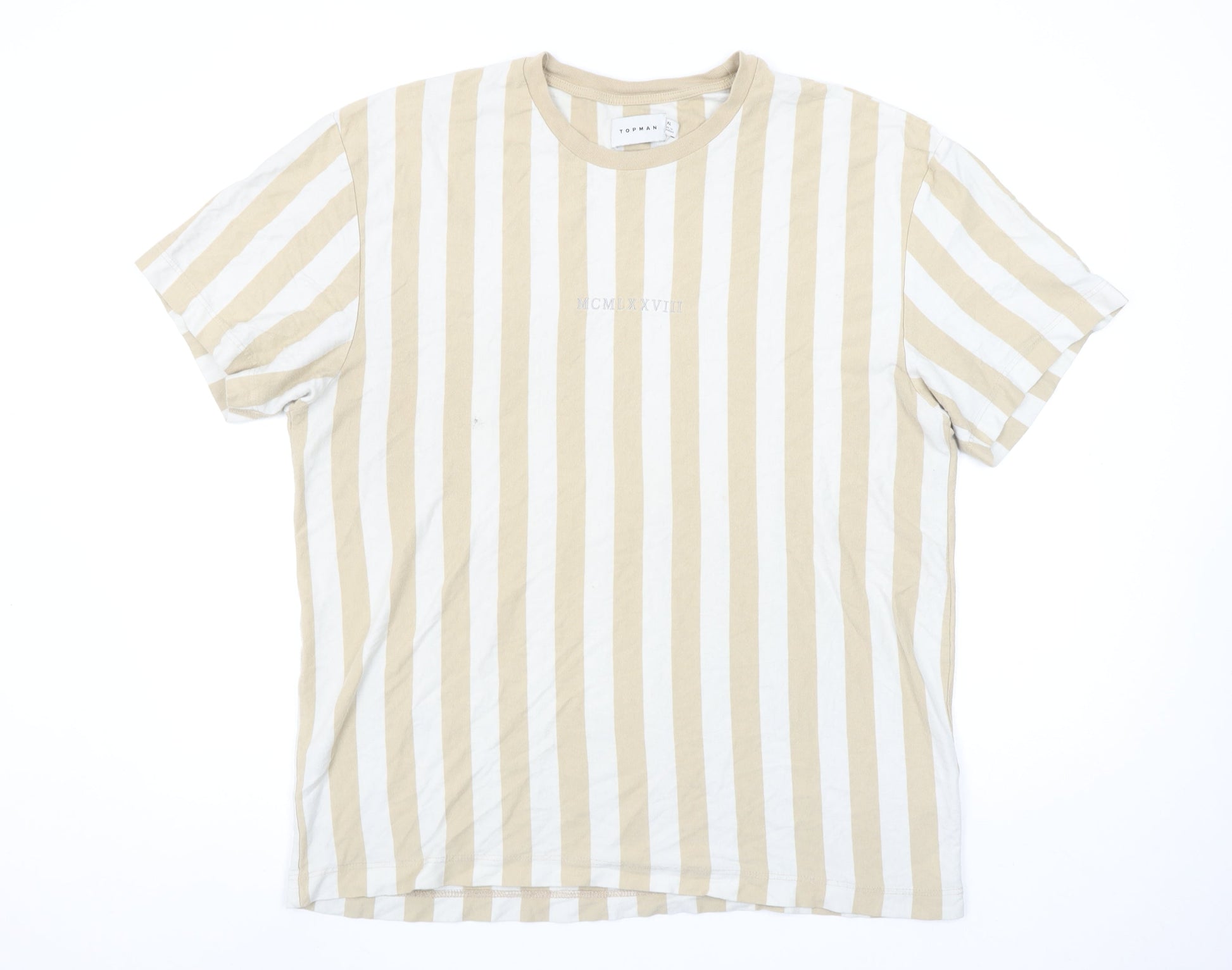 Topman Men's Beige White Striped XL Cotton Crew Neck T-Shirt
