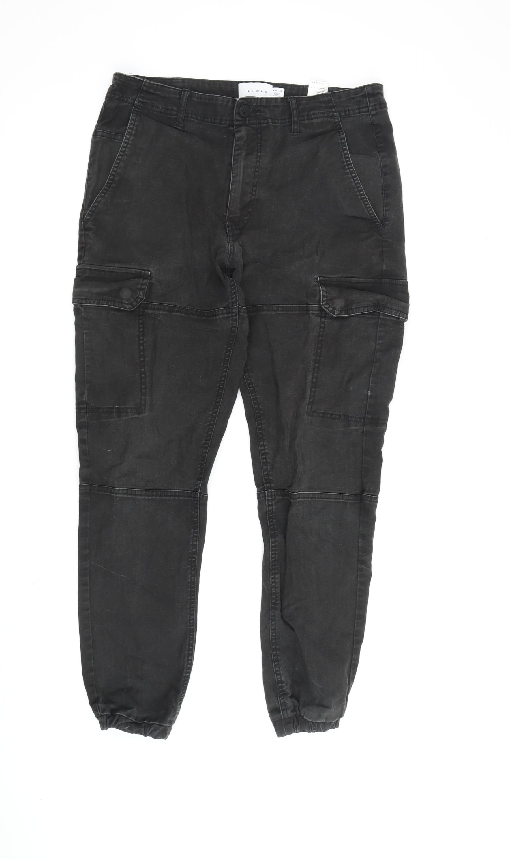 Topman Men's Black Cargo Trousers - Size 30 Regular Fit