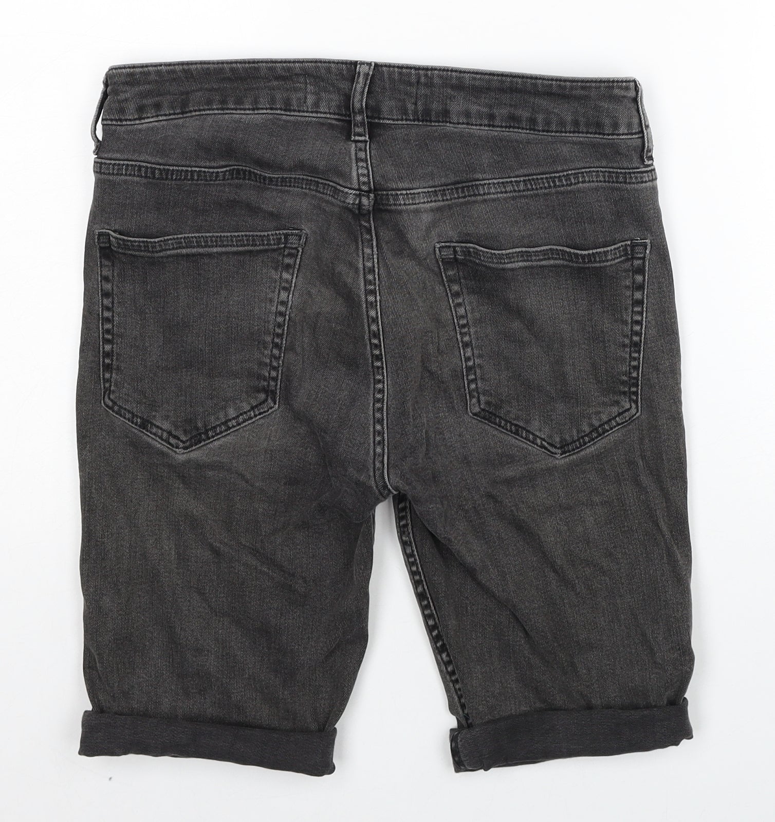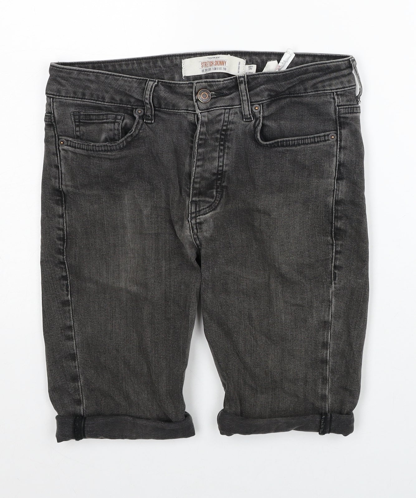 Topman Mens Black Cotton Bermuda Shorts Size 28 in Slim Button