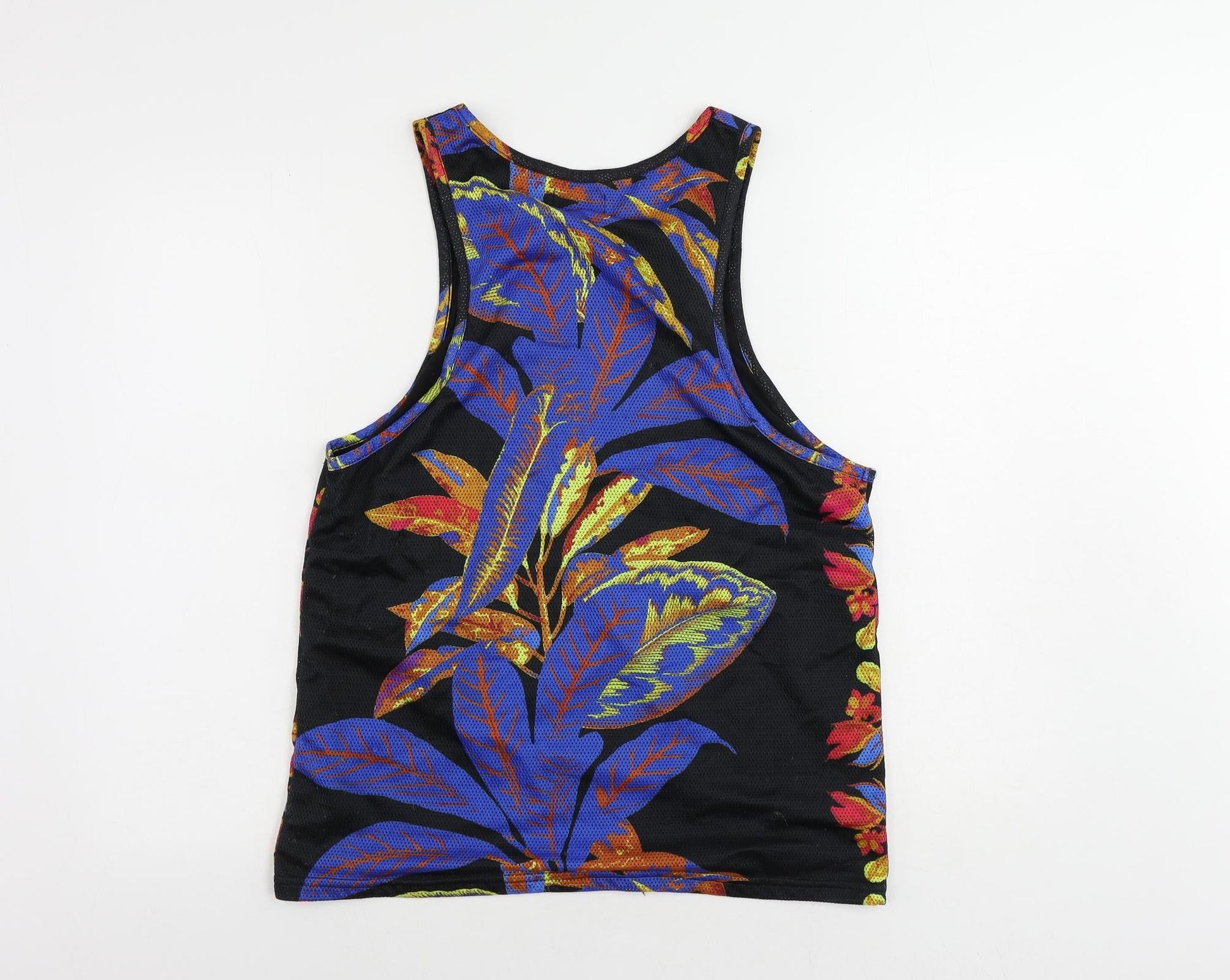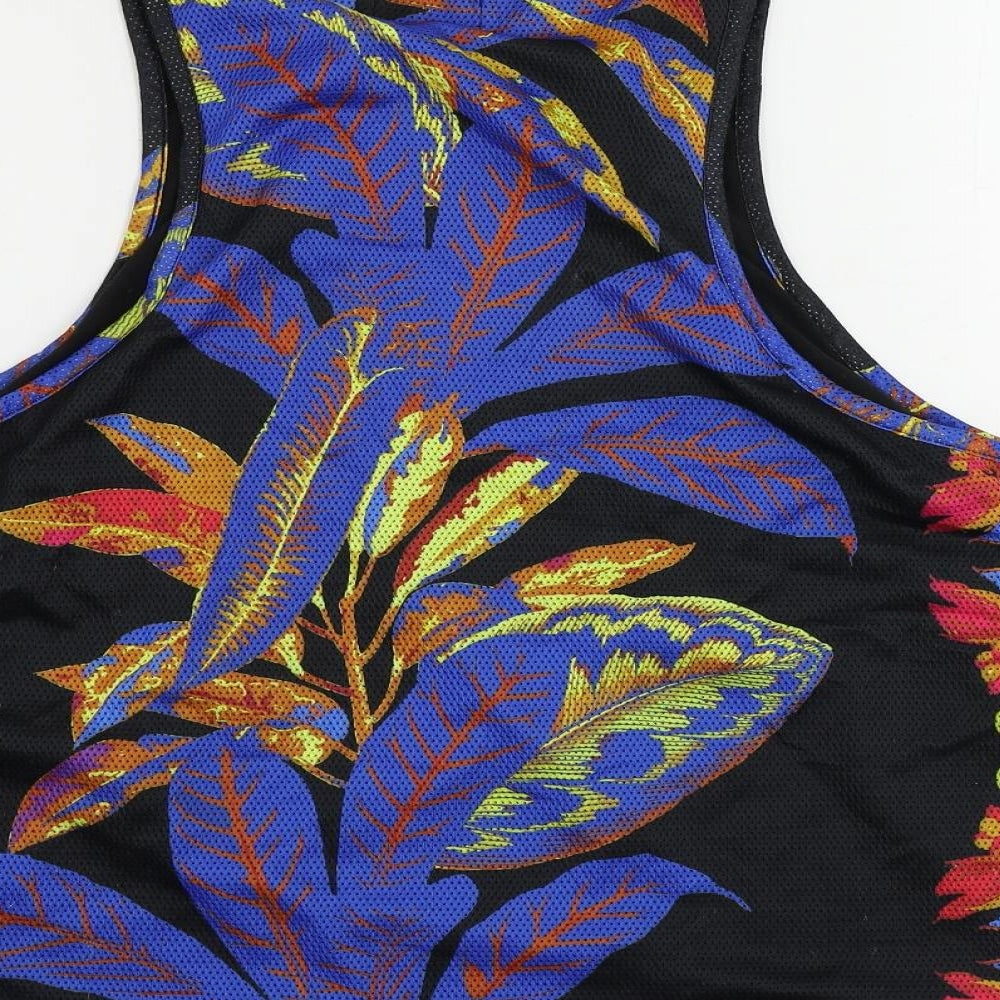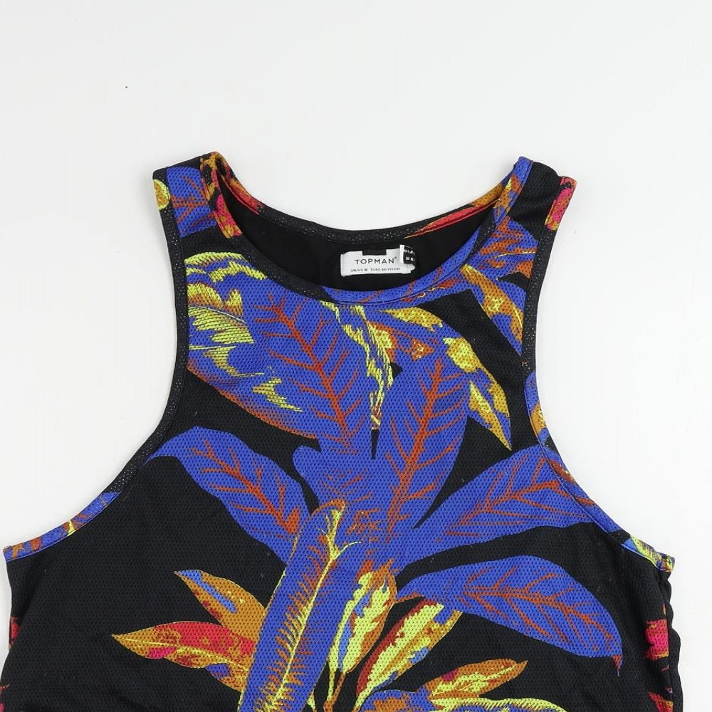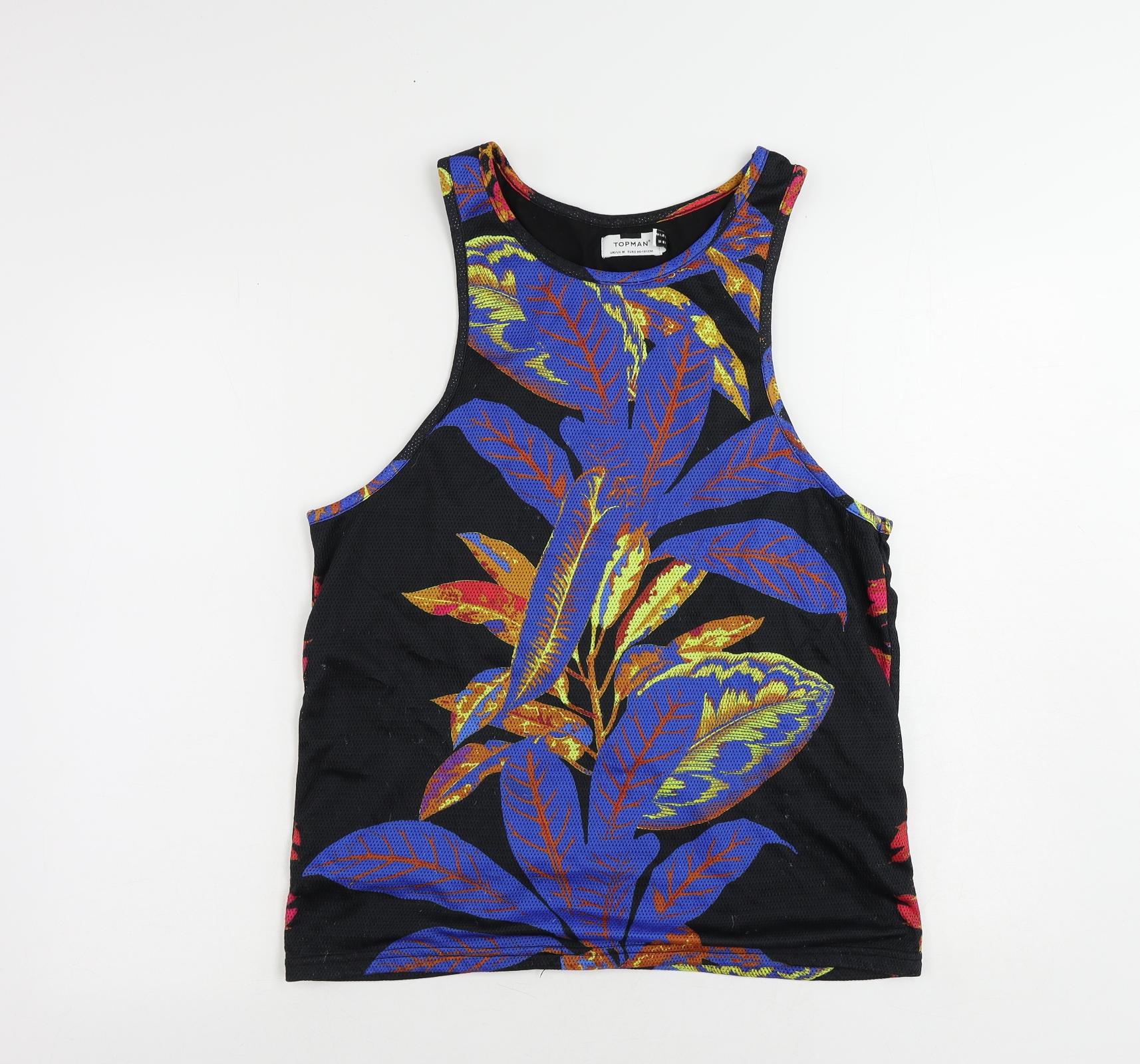 Topman Mens Black Geometric Polyester T-Shirt Size M Round Neck
