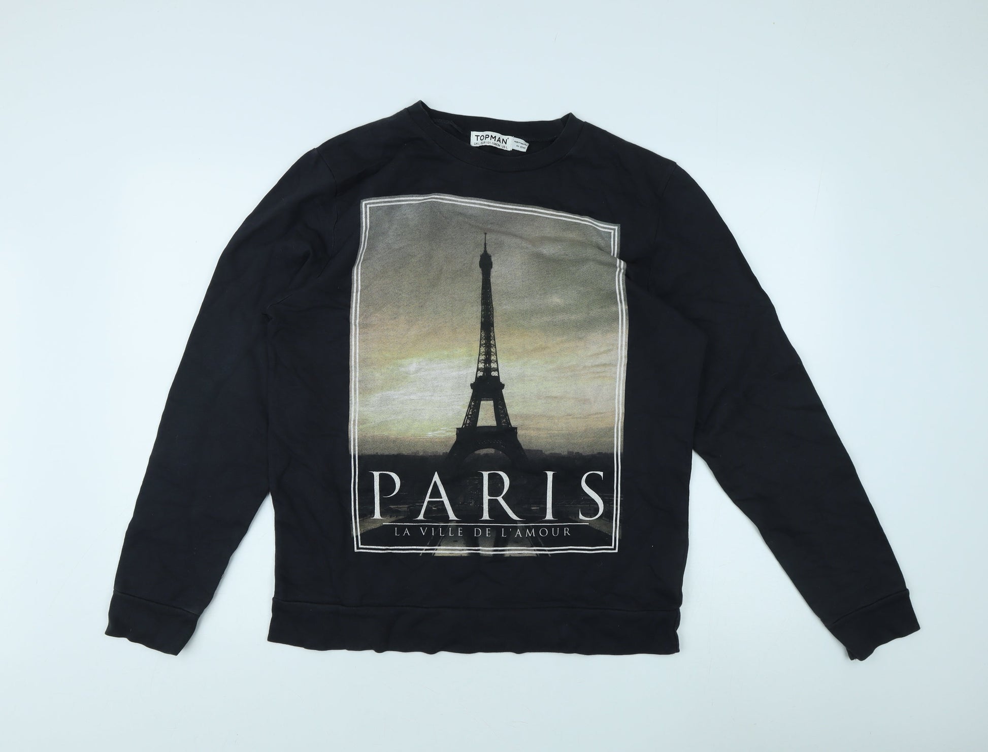 Topman Men's Black Paris Sweatshirt L Pullover