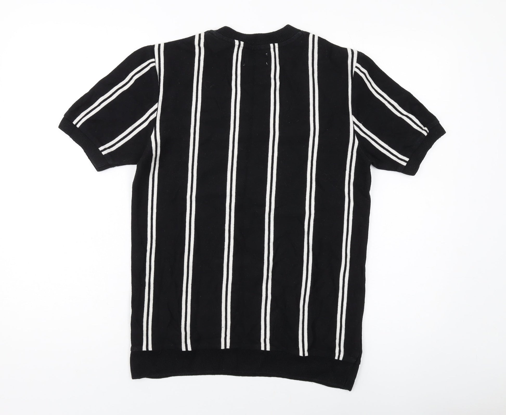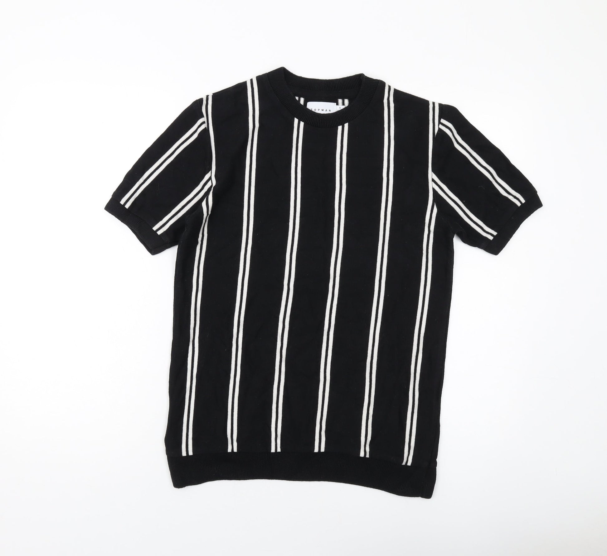 Topman Mens Black Round Neck Striped Cotton Pullover Jumper Size S Short Sleeve