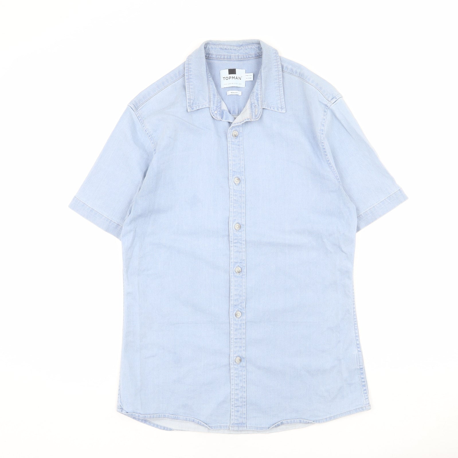 Topman Mens Blue Cotton Button-Up Size M Collared Button