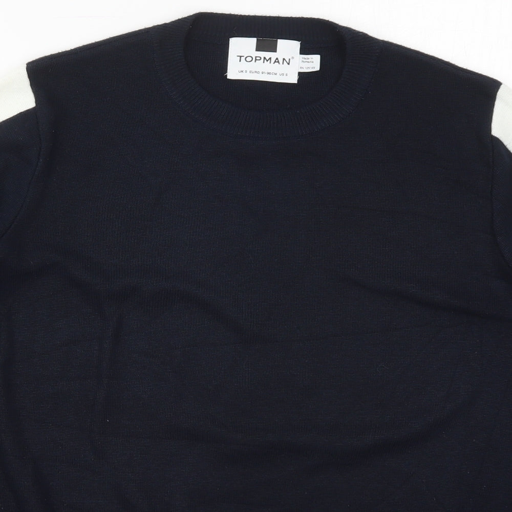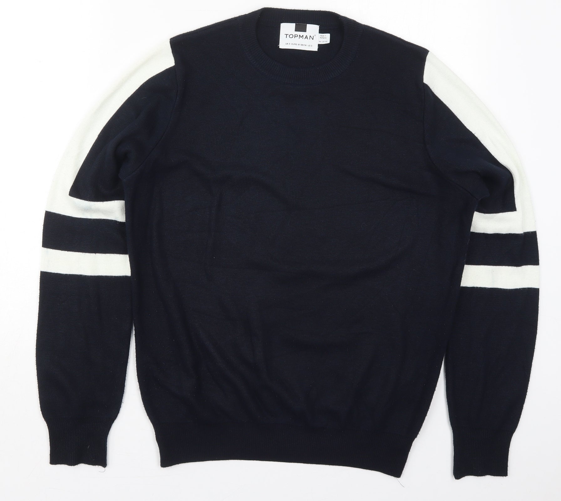 Topman Mens Blue Crew Neck Striped Acrylic Pullover Jumper Size S