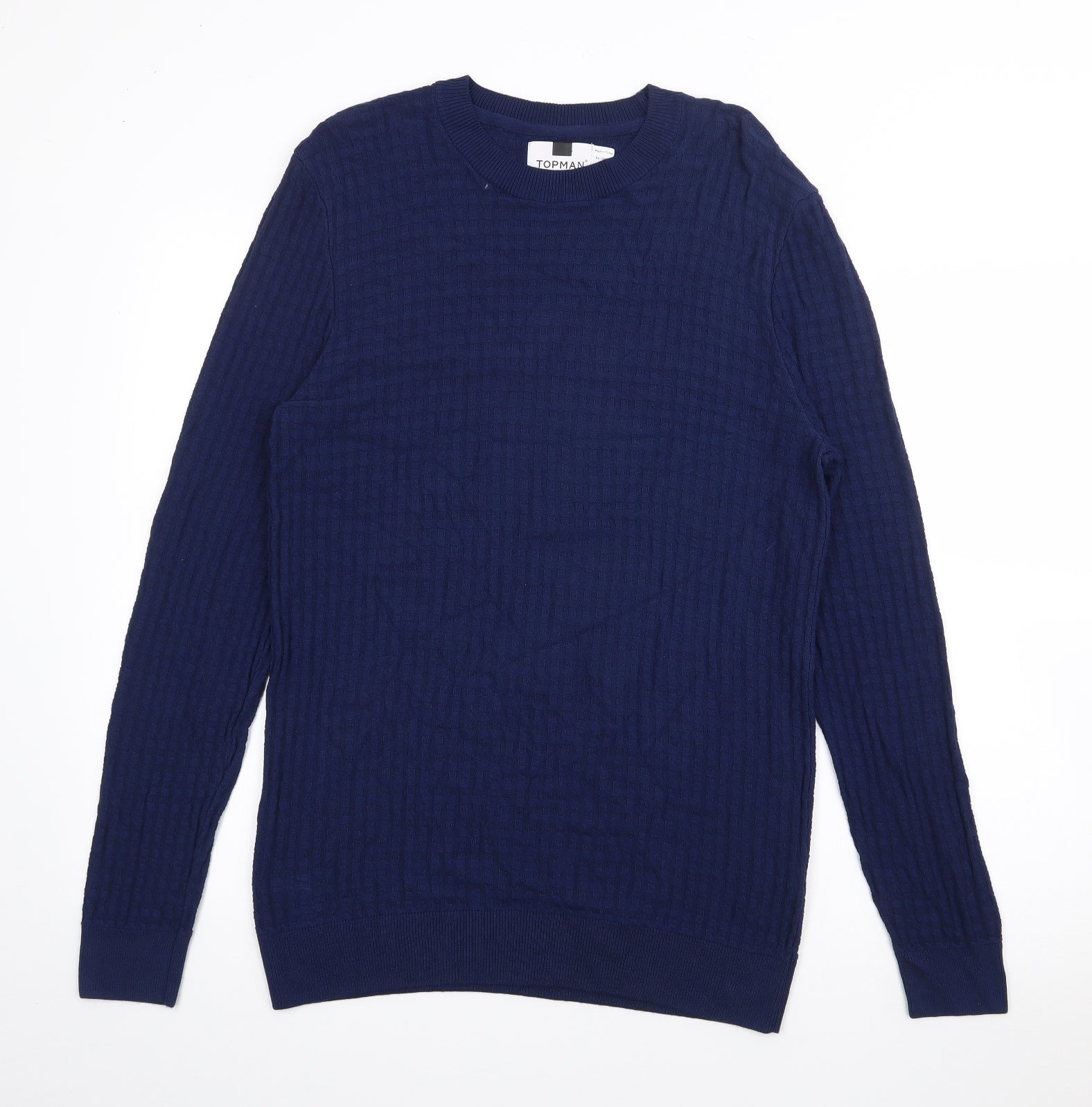 Topman Mens Blue Crew Neck Viscose Pullover Jumper Size M