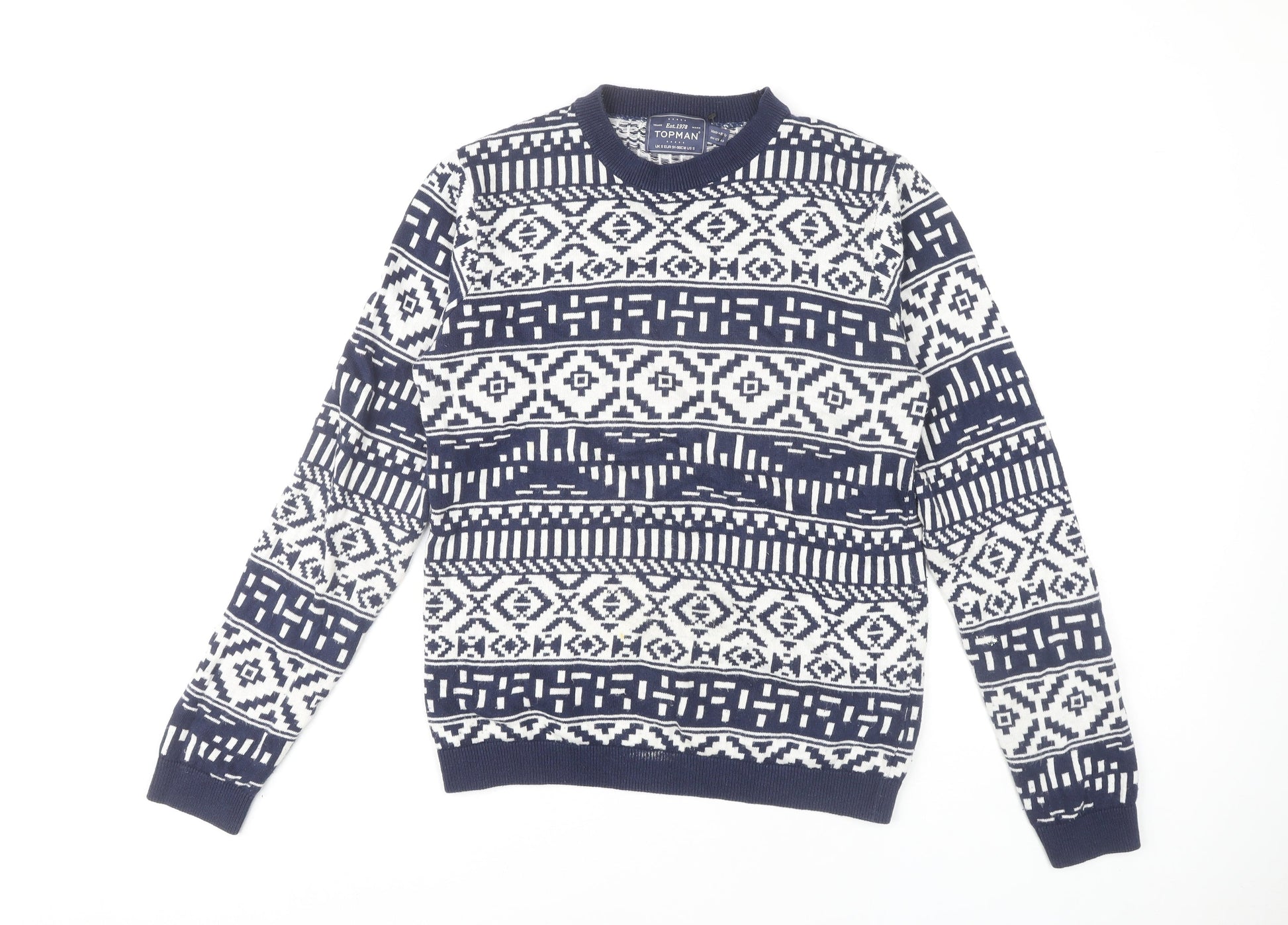 Topman Men's Blue Geometric Pullover Jumper S