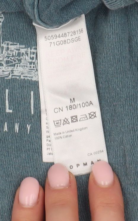 Topman Men's Blue Medium Cotton Crew Neck T-Shirt