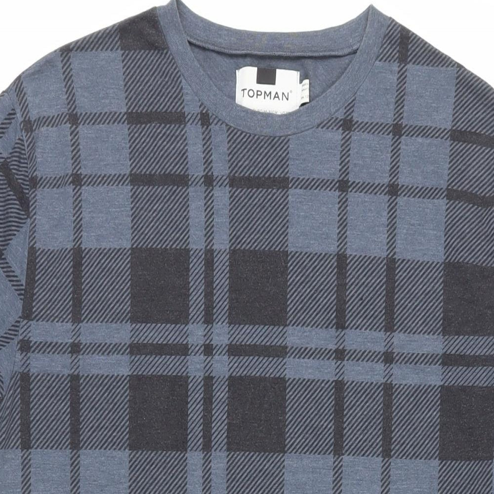 Topman Mens Blue Plaid Cotton T-Shirt Size XS Crew Neck